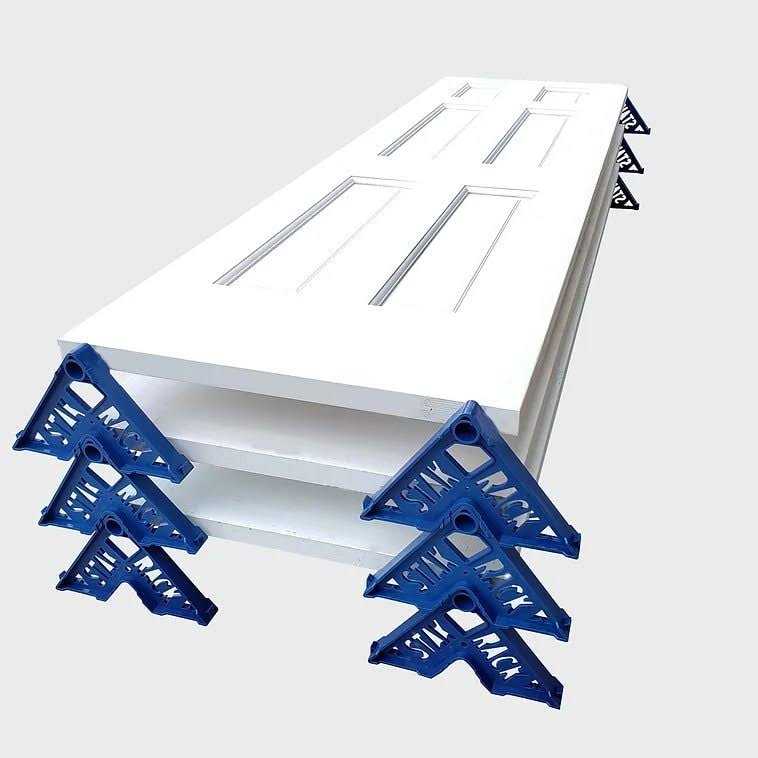 Ultimate Painters Accessory! Stak Rack is a 4-in-1 painting tool that allows you to stack and paint interior and exterior doors, trim, and kitchen cabinet doors with ease. Simply fasten the racking system to the top and bottoms of your doors with the provided screws. Once the first side of the door is painted immediately flip it and paint the other side, then stack the doors and let dry. It’s that simple! To paint trim, you can create rows of trim that can be stacked on top of one another saving time and much needed space. You can paint your doors or trim using brushes or rollers or even a paint sprayer. The perfect paint tool for both contractors & homeowners. Save time and space with Stak Racks unique design that allows one or more people to stack and flip doors for painting with minimal effort. Stak Rack is the perfect addition to any contractor or homeowners toolbox. Stak Rack does not include cross members.