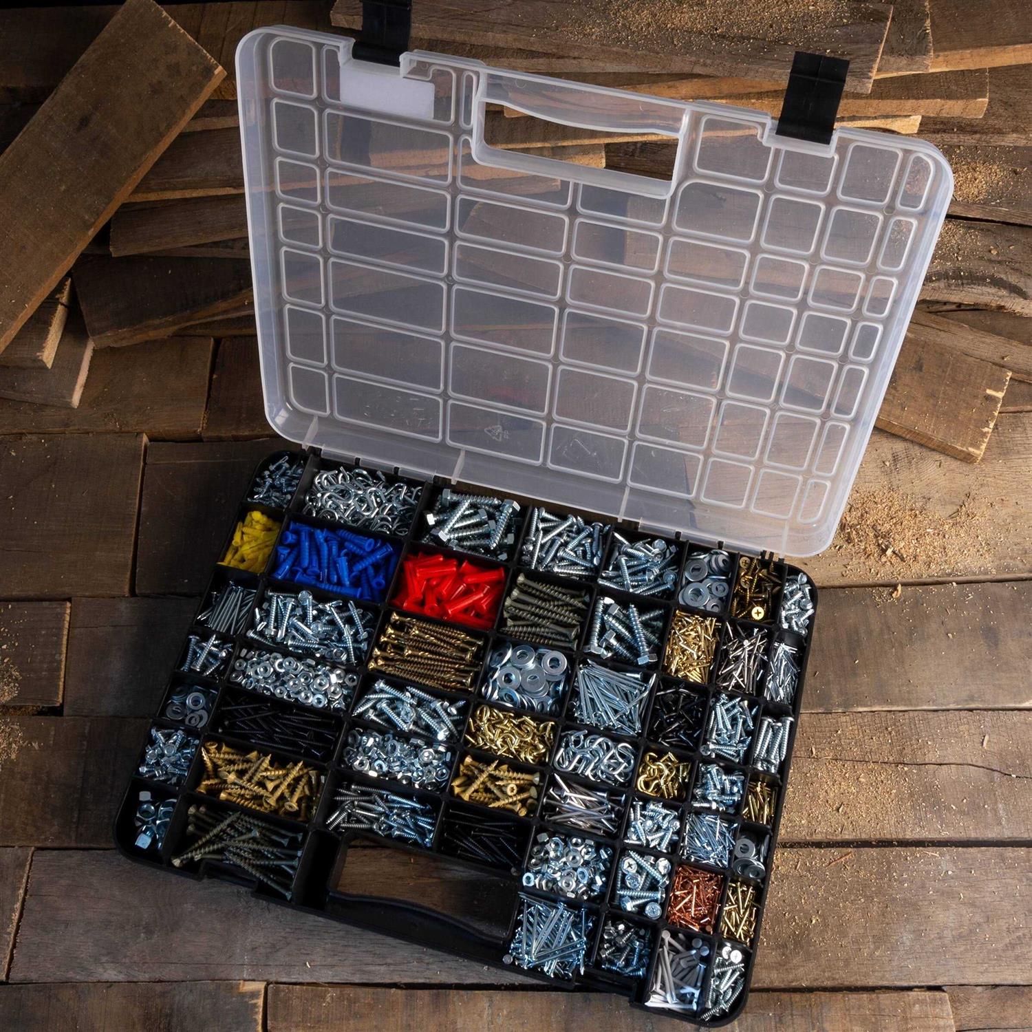 Stalwart – 75-ST6073 Portable Storage Case with Secure Locks and 55 Small Bin Compartments for Hardware, Screws, Bolts, Nuts,