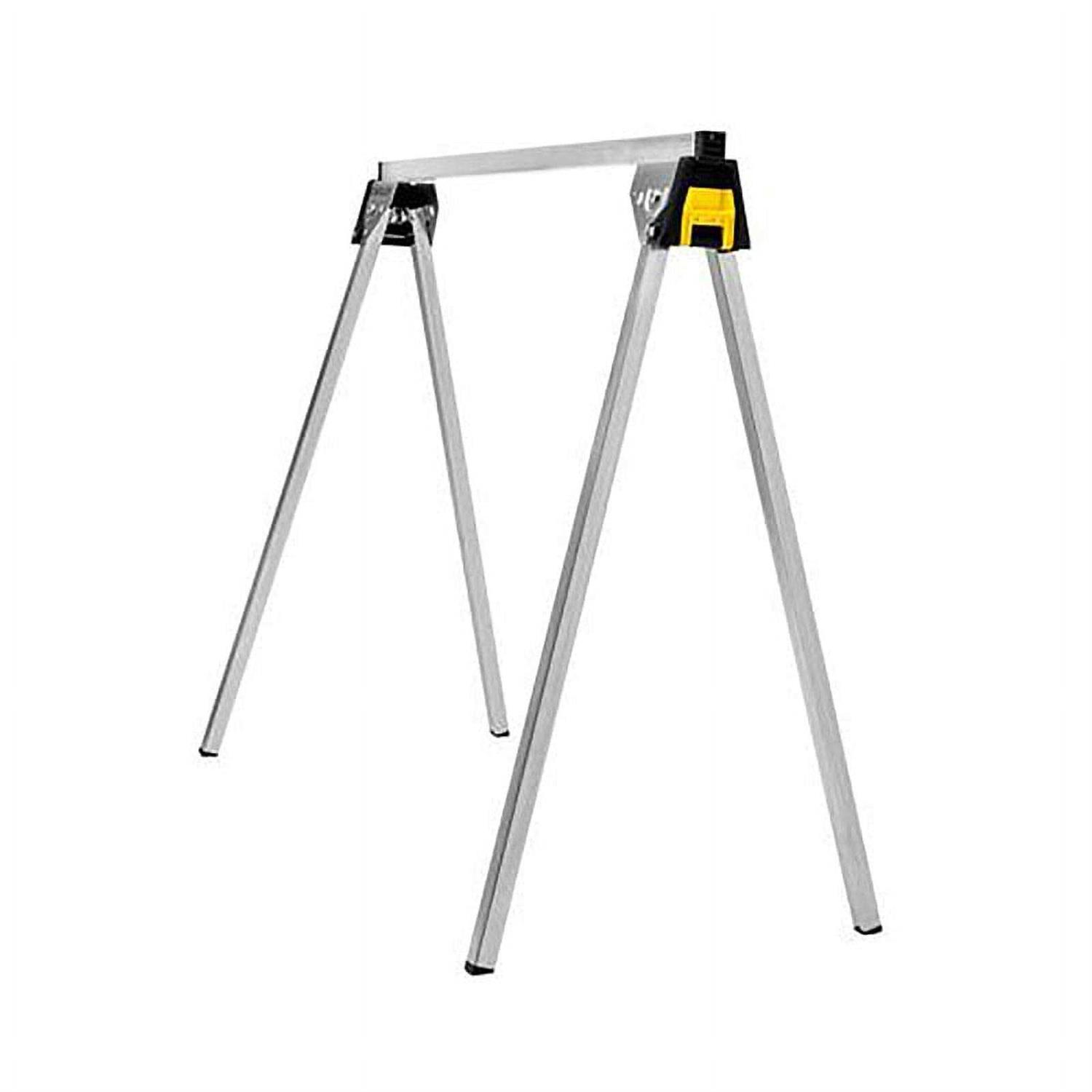 The Stanley Essential Metal Sawhorse has a sturdy, stable structure that can hold up to 750 lbs. (when using a pair). Its upper metal bar enables direct clamping for a wide range of jobs. Anti-slip rubber pads create friction on the surface while cutting. Folding legs enable quick setup and breakdown. Side latches hold 2 single units together for easy carrying and compact storage. Upper metal bar enables various clamping applications Anti-slip rubber pads create friction on the surface while cutting Stable, metal structure supports up to 750 lbs. (when using a pair) Folding legs enable quick setup and breakdown Side latches hold 2 single units together for easy carrying and compact storage 29 in. L Complete all your hardest work easily by selecting this Stanley Folding Metal Sawhorse. Anti-slip rubber pads create friction on the surface while cutting.
