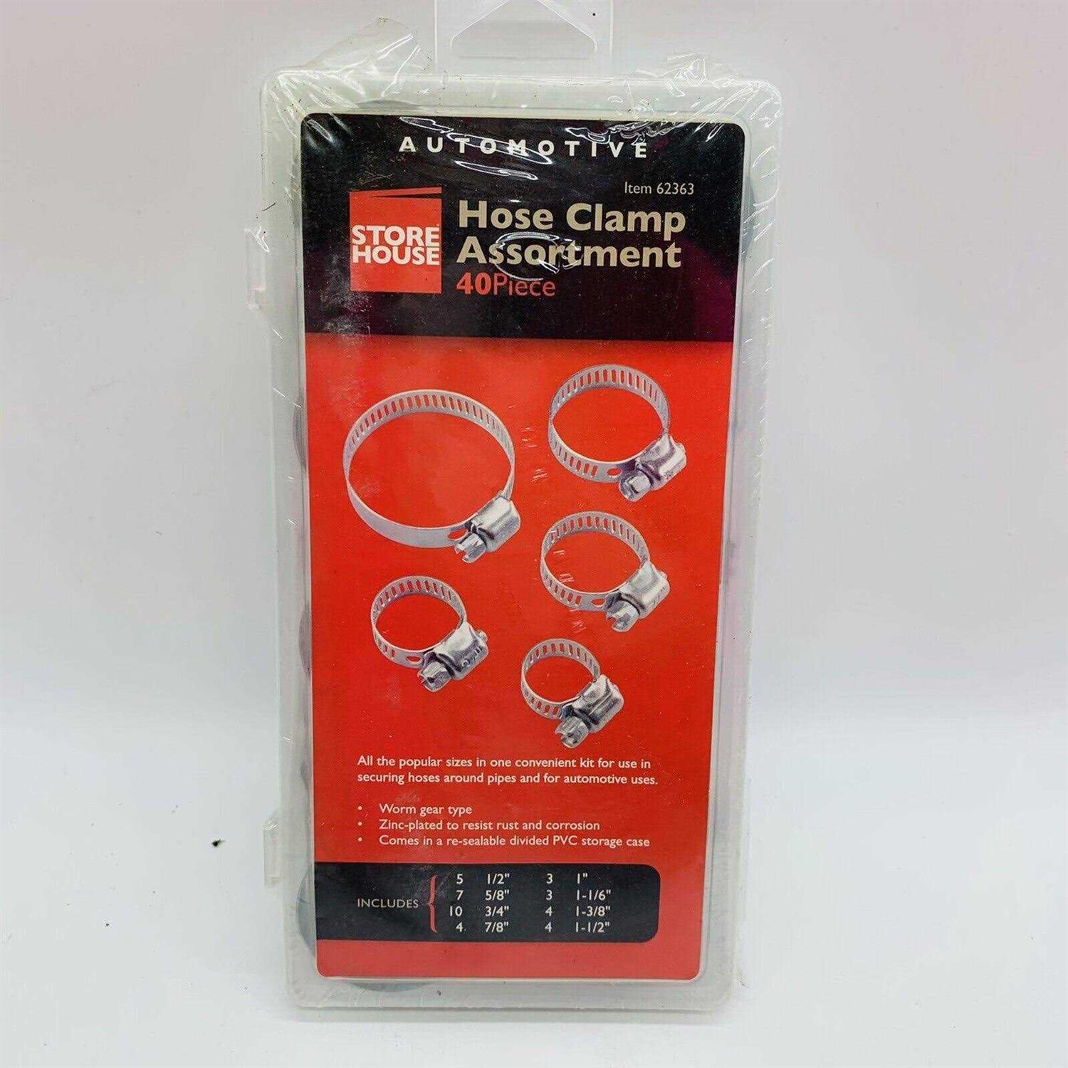 All the popular sizes of hose clamps you need in one convenient kit for securing hoses around pipes or automotive use. These hose clamps have worm gear drive for secure closure. The hose clamps are constructed from steel and zinc coated to resist rust.
