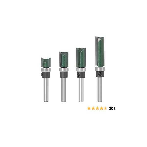 Straight Router Bit with Bearing Wolfride 4pcs Flush Trim Template 1/4-inch Shank Top Bearing Pattern Router Bit