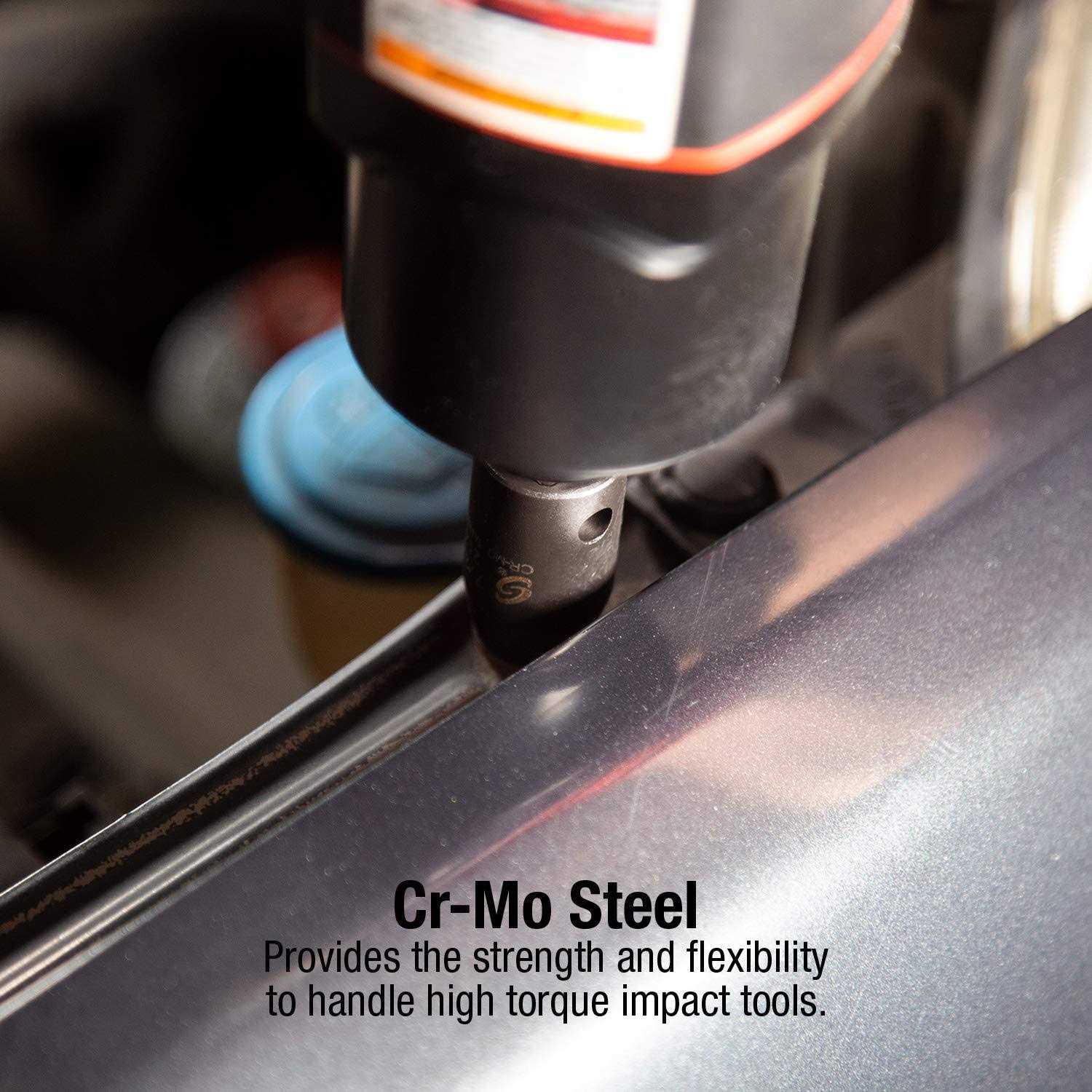 Forged from high quality chrome-molybdenum alloy steel for long life. Each impact socket features a radius corner design causing the socket to grab the sturdy wall of the fastener instead of grabbing the corners. Includes 10mm 11mm 12mm 13mm 14mm 15mm 16mm 17mm 18mm 19mm 20mm 21mm 22mm 23mm 24mm 25mm 26mm 27mm 28mm 29mm 30mm 32mm 33mm 34mm 35mm and 36mm sizes. Packaged in a durable heavy duty blow mold case for convenient storage and transport.