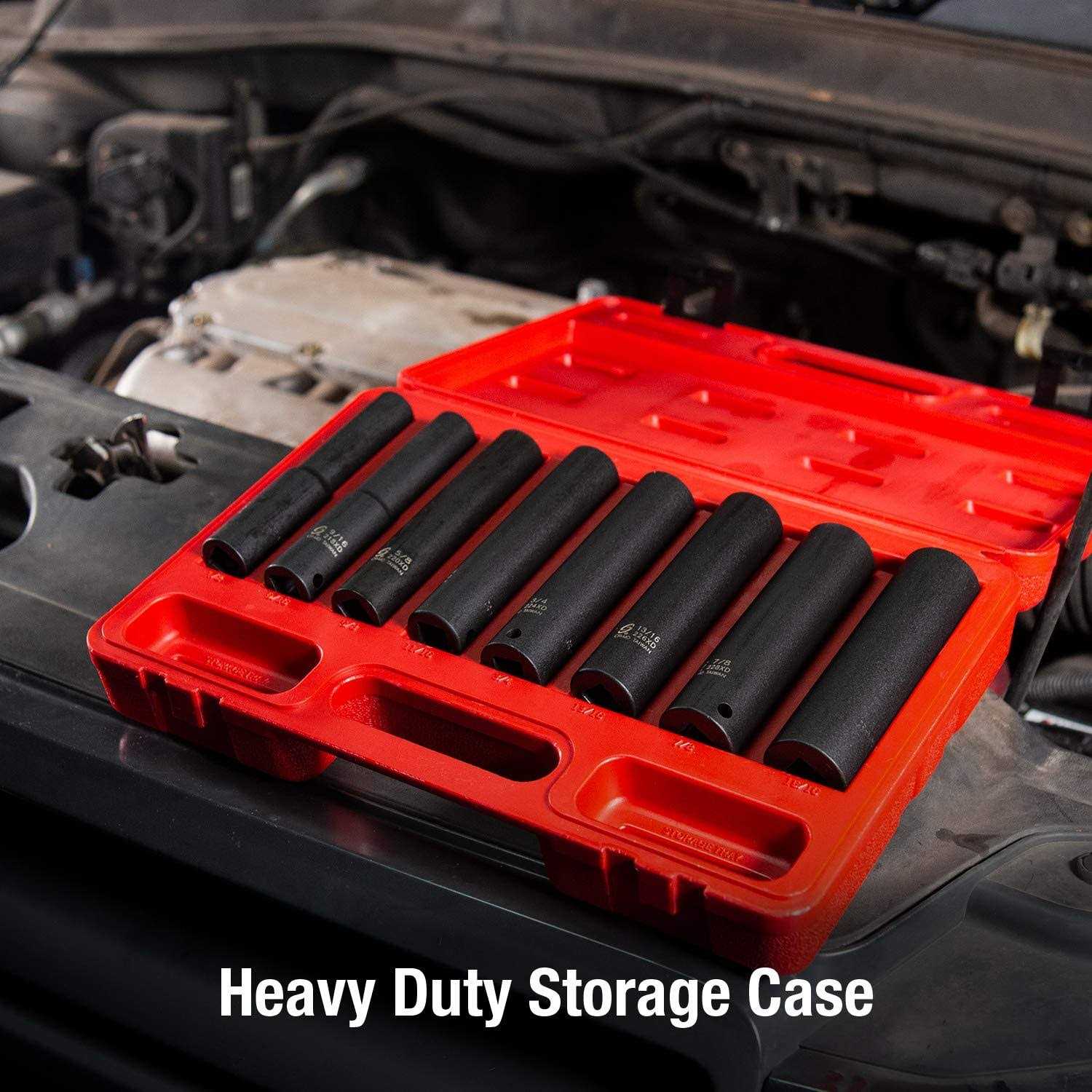 Forged from the finest chrome molybdenum alloy steel – the best choice for strength and durability. Radius corner design – to extend the life of fasteners. Ideal for working in tight areas. Included in a heavy duty blow molded case. Fully guaranteed No doubt Sunex tools offer one of the most complete and toughest Impact Socket lines around. This 1/2″ drive 6 point extra deep impact socket set is designed to tackle the toughest jobs with solid durability and keeps them pounding job after job. Also each socket features a radius corner design causing the socket to grab the sturdy wall of the fastener instead of grabbing the corners resulting in less wear on the fastener.