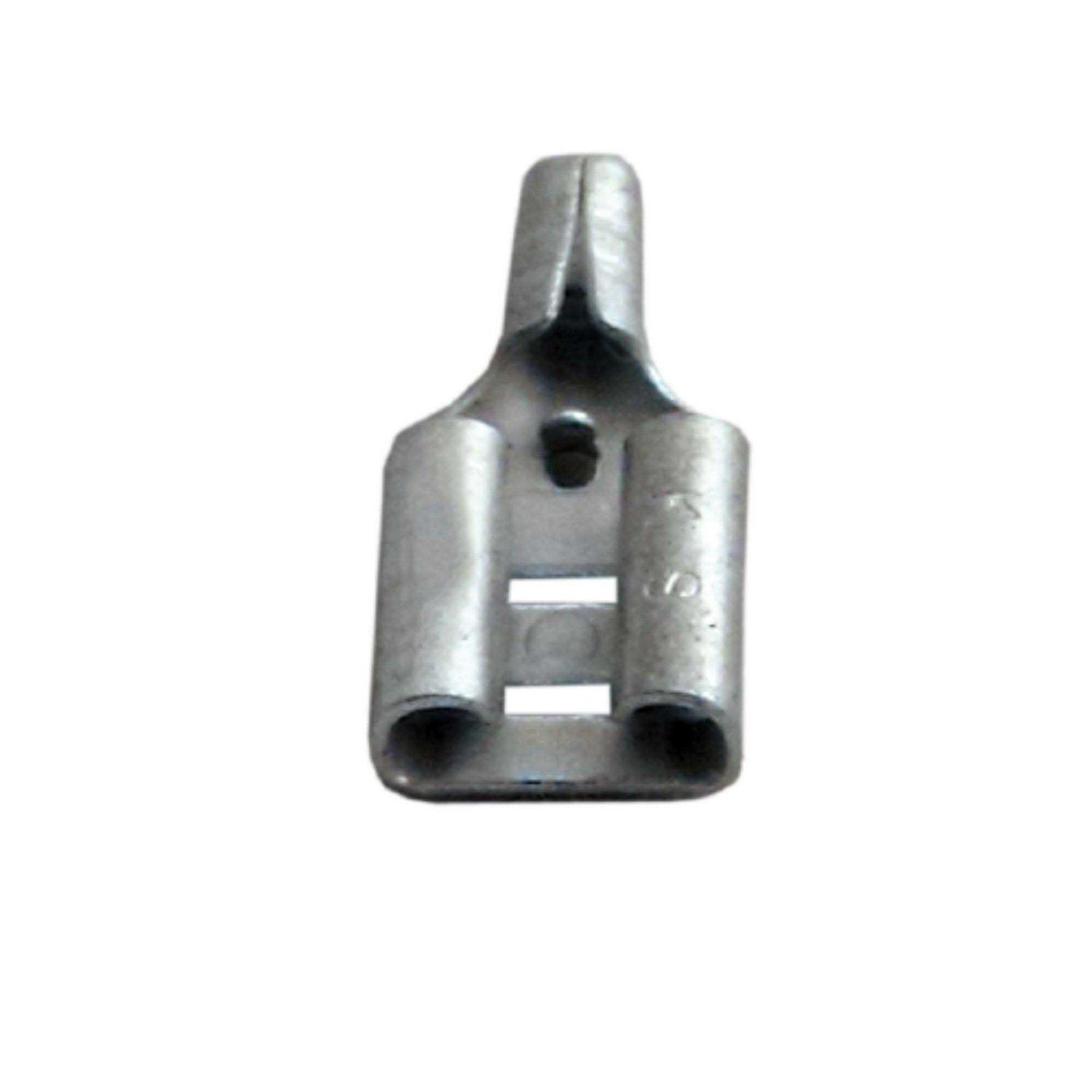 Disconnect by Supco. Details:This Supco T series female tab-type quick disconnect electrical connector is uninsulated for use where insulation is not required. The connector has internal barrel serrations for good wire insulation contact and maximum tensile strength when crimped onto multi-strand wire. This female quick disconnect has a maximum operating temperature of 900 degrees F and is suitable for use with same-size male tab-type connectors in high-temperature applications, such as in electric motors. The company, founded in 1945, is headquartered in Allenwood, NJ.