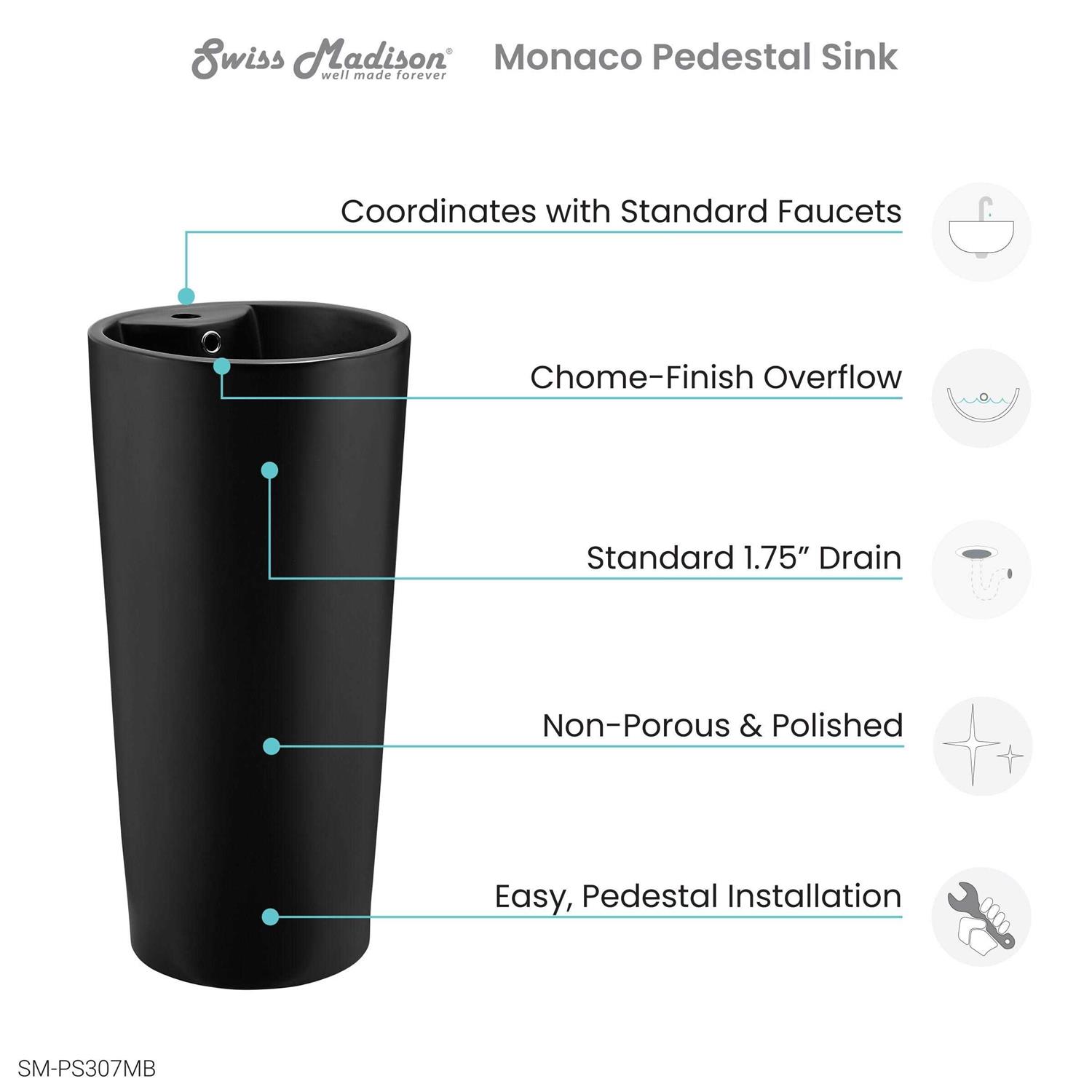 Swiss Madison Monaco Matte Black Ceramic Circular Pedestal Sink