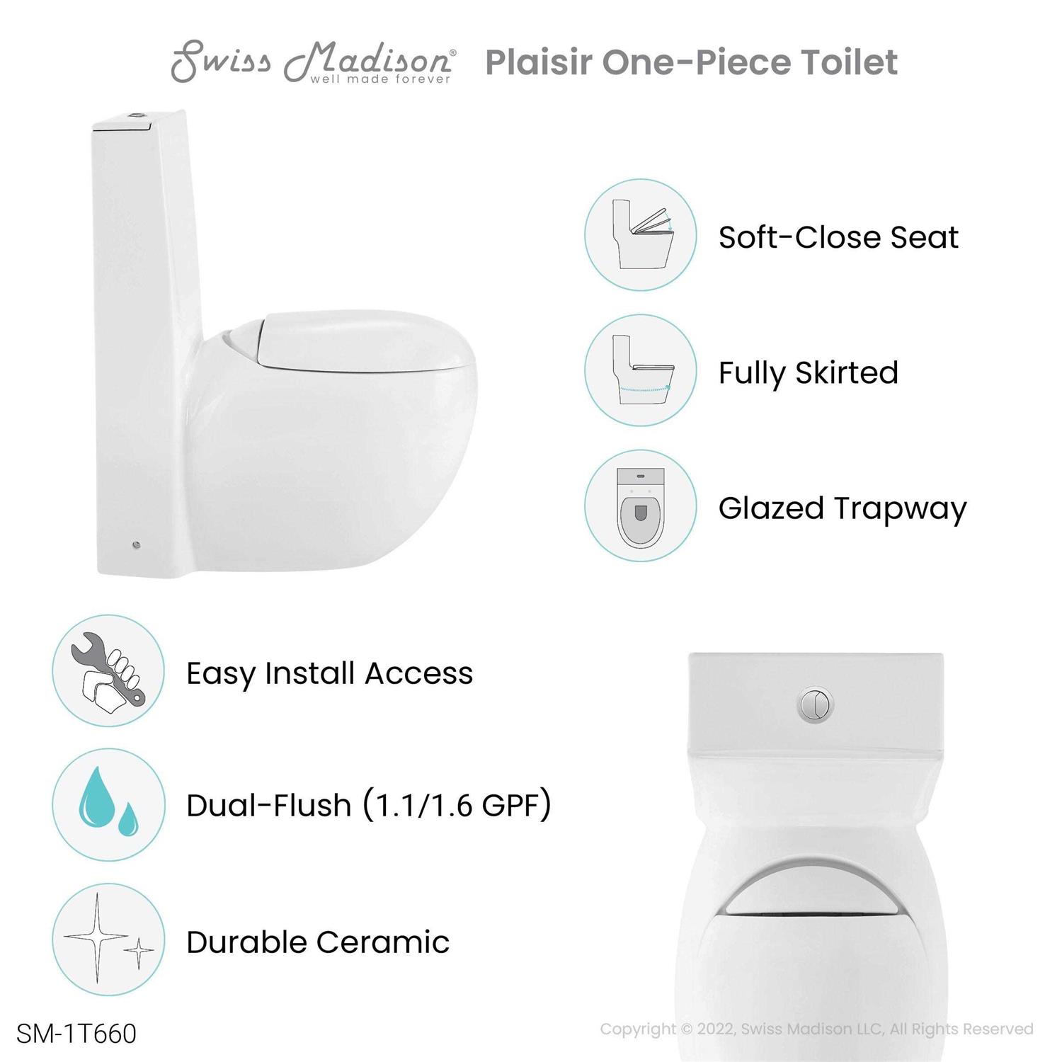 - Create a stylish look to your toilet by using this Swiss Madison Plaisir Dual Flush Elongated Egg Toilet in Glossy White Seat Included.
