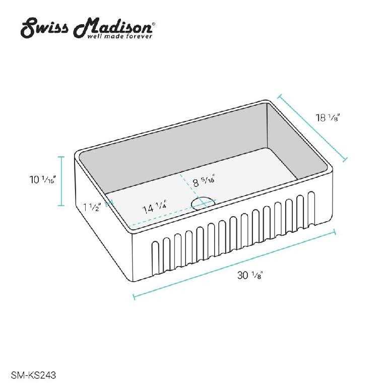 Swiss Madison The Delice Farmhouse sink is a well-designed addition to any setting. Made of ceramic, the sink is the definition of durability and strength. Each wide side has a unique fluted design to allow greater choice during installation.