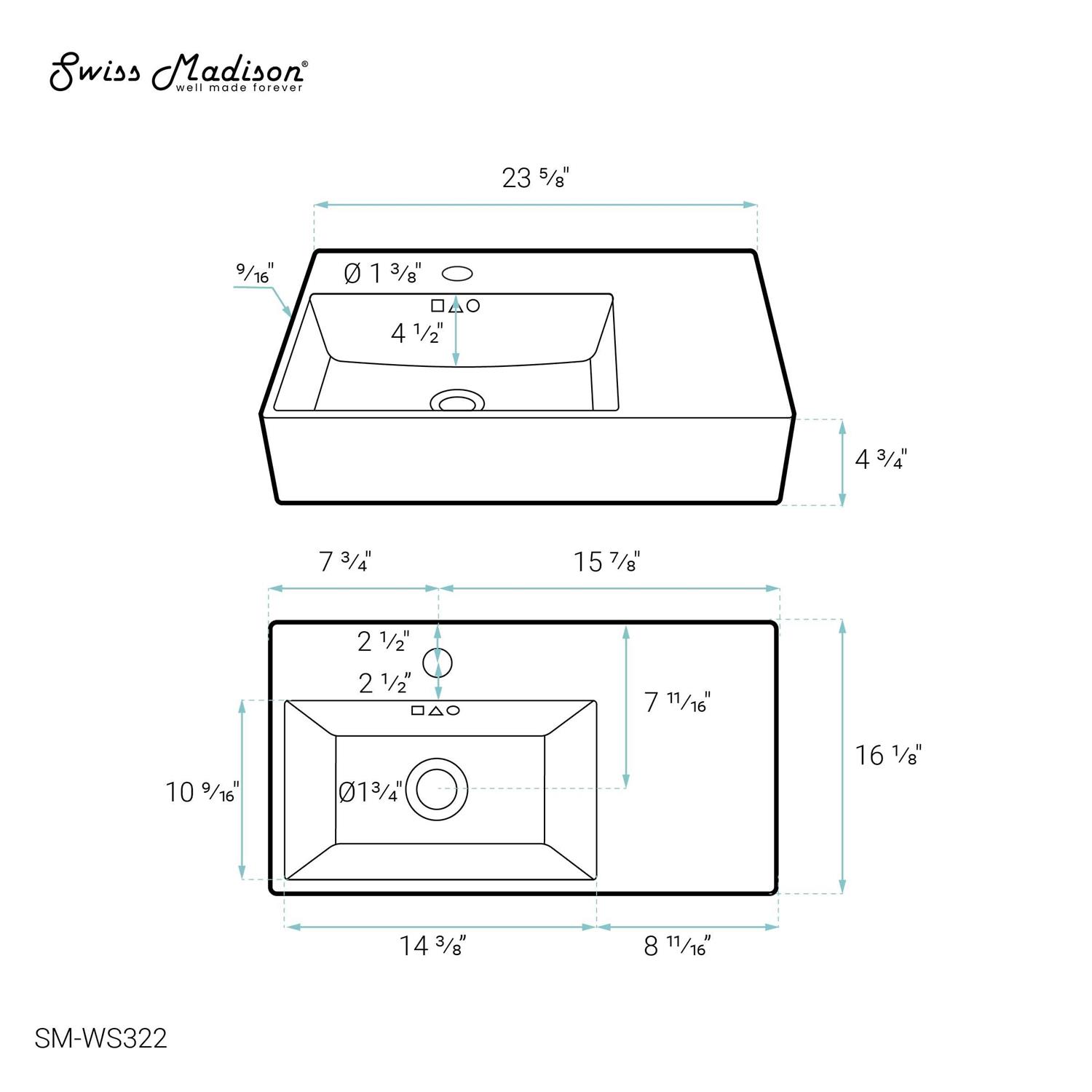 Be the first to review “Swiss Madison St. Tropez 24 x 18 Ceramic Wall Hung Sink with Left Side Faucet Mount”