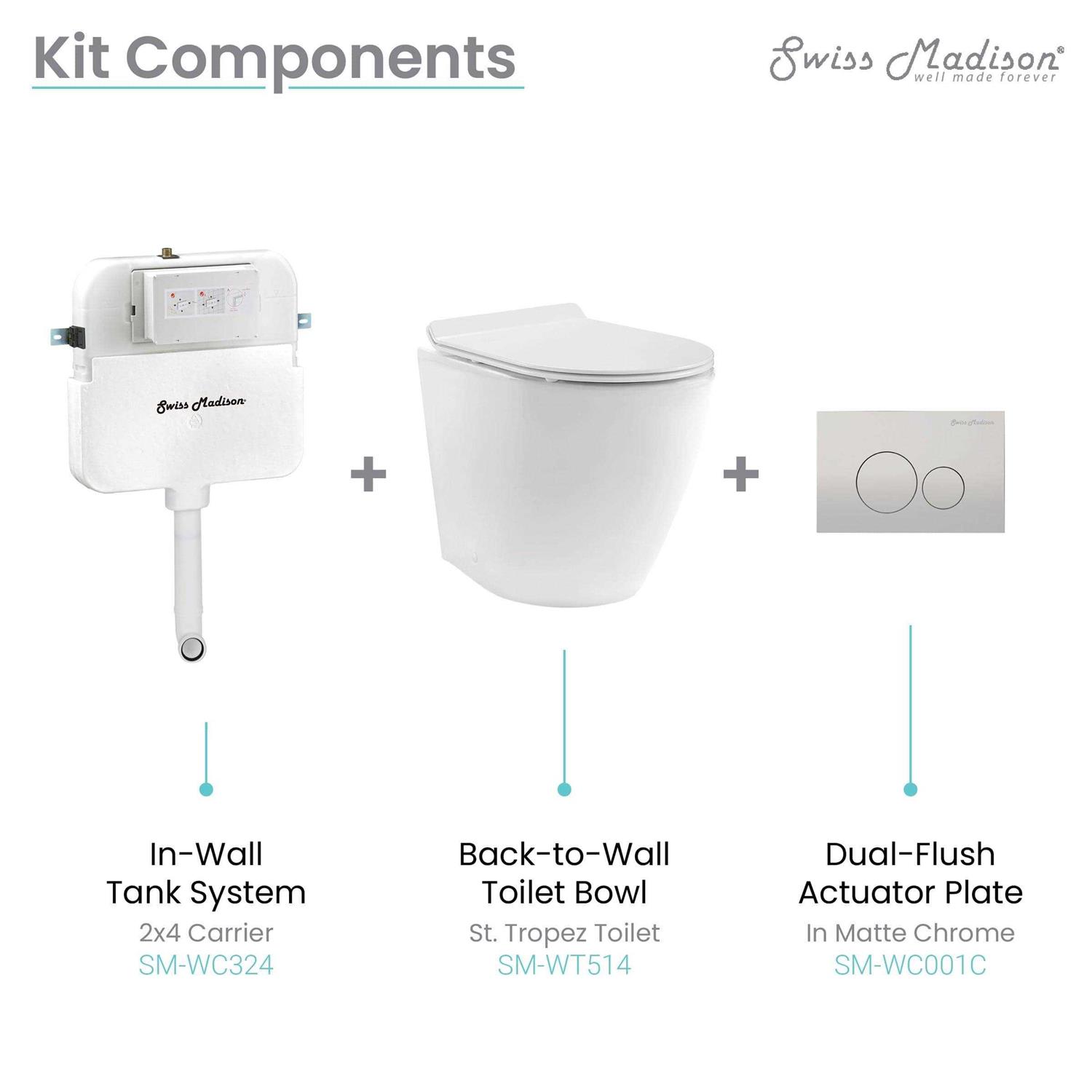 Swiss Madison St. Tropez Back to Wall Concealed Tank Toilet Bowl Bundle SM-WK514-01C