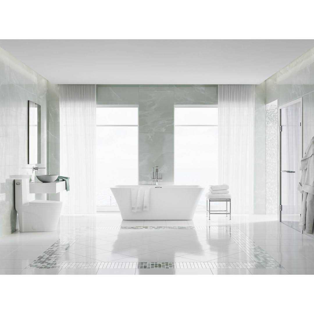 The St. Tropez One-Piece Elongated Toilet offers a seamless design with a fully skirted bowl creating a modern design for any bathroom. Its right side single flush handle and Vortex flush technology uses powerful dual nozzles to keep your bowl cleaner than standard rim holes.