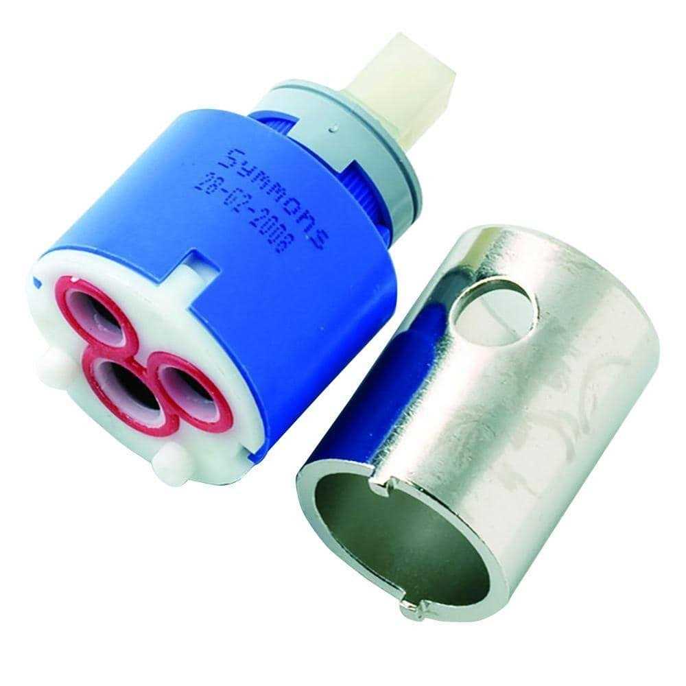 Symmons This Symmons Replacement Cartridge fits most Symmons Symmetrix single handle faucets. This cartridge will resolve most leaks and is designed for durability and strength. Use of this valve cartridge will also help balance the pressure of hot and cold water to maintain a comfortable water temperature. This model is designed to be used for both hot and cold water. Installing a replacement cartridge is an easy way to keep your Symmons faucet working perfectly for years to come.