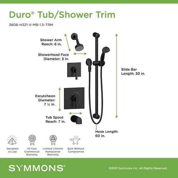 Symmons 3606-H321-V-MB-1.5-TRM Duro Tub/Shower Trim Matte Black