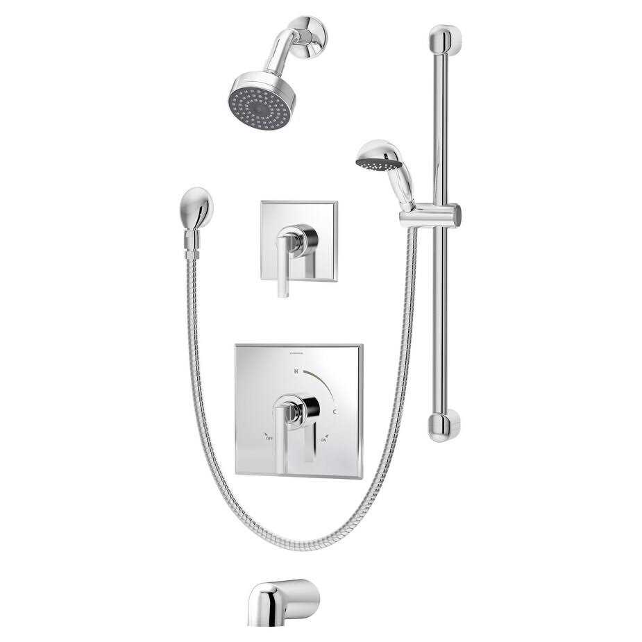 Blending sleek forms and simple lines, the Duro 1-Handle Wall-Mounted Tub and Shower Trim with Hand Shower boasts a modern sophistication that is a natural complement to contemporary bathroom designs. All of Symmons’ products are designed with the customer in mind; the proof is in the details. Plated in a scratch-resistant matte black finish over solid brass, this hand shower trim has the durability to add contemporary elegance to your bathroom for a lifetime. With an ADA compliant single lever handle design, the solid brass valve cover plate features hot and cold indicators to ensure custom temperature setting with ease of use for everyone. At an eco-friendly low flow rate of 1.5 gallons per minute, the single mode hand shower is WaterSense certified so that you can conserve water without sacrificing performance, which will, in turn, save you money on your water bill. This model includes everything you need for quick installation. Youll easily be able to update your bathroom without having to replace your valve. With features that are crafted to last and a style that is designed to please, Symmons’ Duro 1-Handle Wall-Mounted Tub and Shower Trim with Hand Shower is a seamless addition to your bathroom sink for a lifetime.
