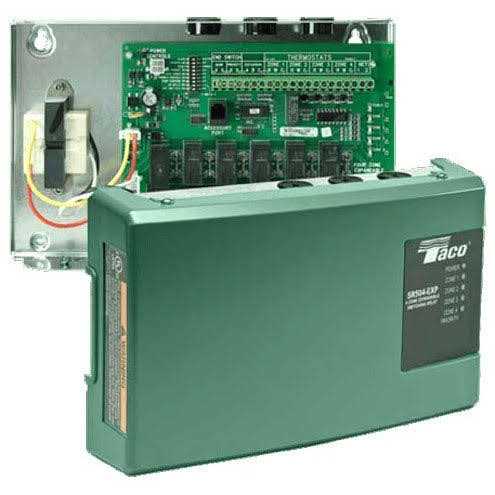 Taco Switching Relays combine clearly labeled PC board layouts with advanced features that allow for total system customization. Whether using basic priority switching, or add-on power controls, the job is made easy. External indicator lights provide instant diagnostic feedback, making a snap of service calls or new installation start-ups. All switching relays are UL listed, and are compatible with conventional and programmable thermostats. For those larger jobs, the -EXP Switching Relays can be expanded up to 120 zones (20 zoning panels) with priority. Taco Switching Relays are available in one, two, three, four, and six zones.