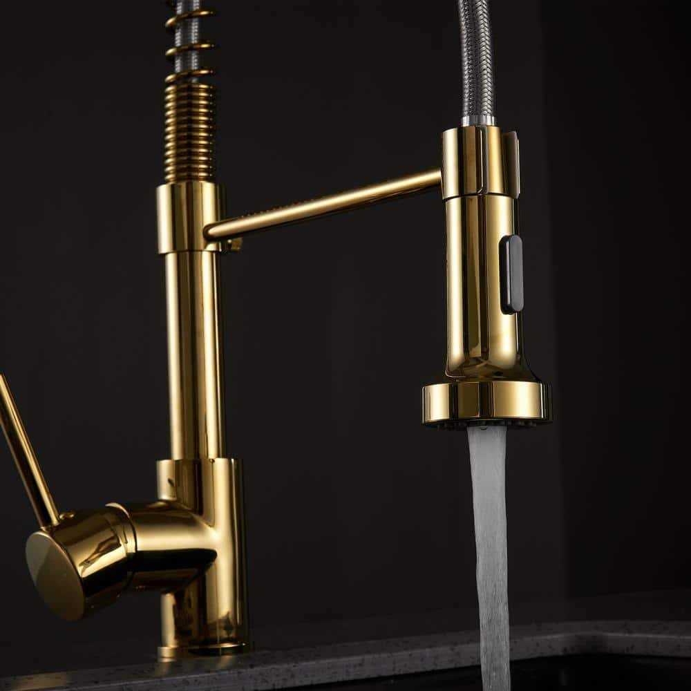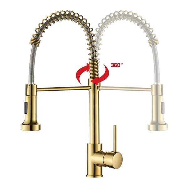 - Give your kitchen sink an unique accent by installing this Tahanbath Modern Single Handle Pull Down Sprayer Kitchen Faucet HighArc in Brushed Gold