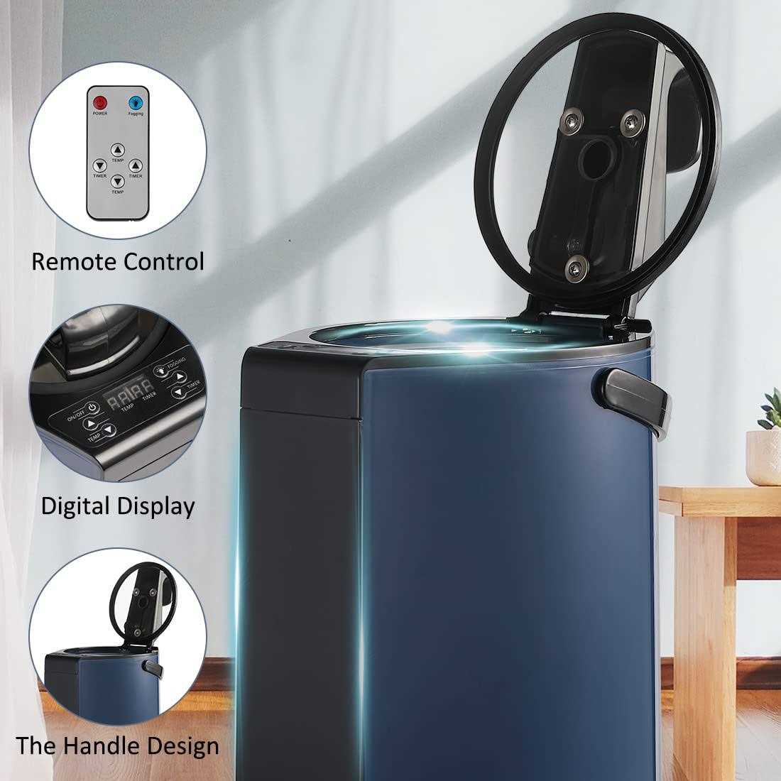 【UPGRADED STEAM POT】The latest 3 L capacity steam boiler is easy to control and use. By the wireless remote or the smart touch button on the steam body, you can turn it on/off and adjust the temperature(1-9levels) and timing(1-60mins) as you like, you can easily decide the temperature that suits you 【SAFE DESIGN】Sauna heater steamer equipped with temperature-sensitive microcomputer automatic power-off device, timing power adjustment, anti-dry burning, explosion-proof, anti-leakage protection, can effectively protect the heating plate from being burned out and prolong the service life 【HIGH-QUALITY MATERIAL】The sauna steamer pot uses a high-quality ABS shell as well, The steam pot liner is made of 304 stainless steel, durable and anti-corrosion. Upgraded thickened material, one piece molding without welding. Explosion-proof, anti-dry and anti-leakage 【FOGGING FUNCTION】When you press the atomization button on the control panel of the steam engine in the sauna, the fog light will turn on, giving the steam better wettability, Long-term use helps to stabilize weight, improve skin tone and boost the immune and nervous system, reduce stress and fatigue 【WIDELY USED】Designed with handle and a button on it to make it portable,Come with the pipe that connects the sauna and steamer, Large capacity pill box to isolate herbs, essential oils, fumigants, etc. fit for steam sauna, steam cabin, steam shower, hot yoga or other related items