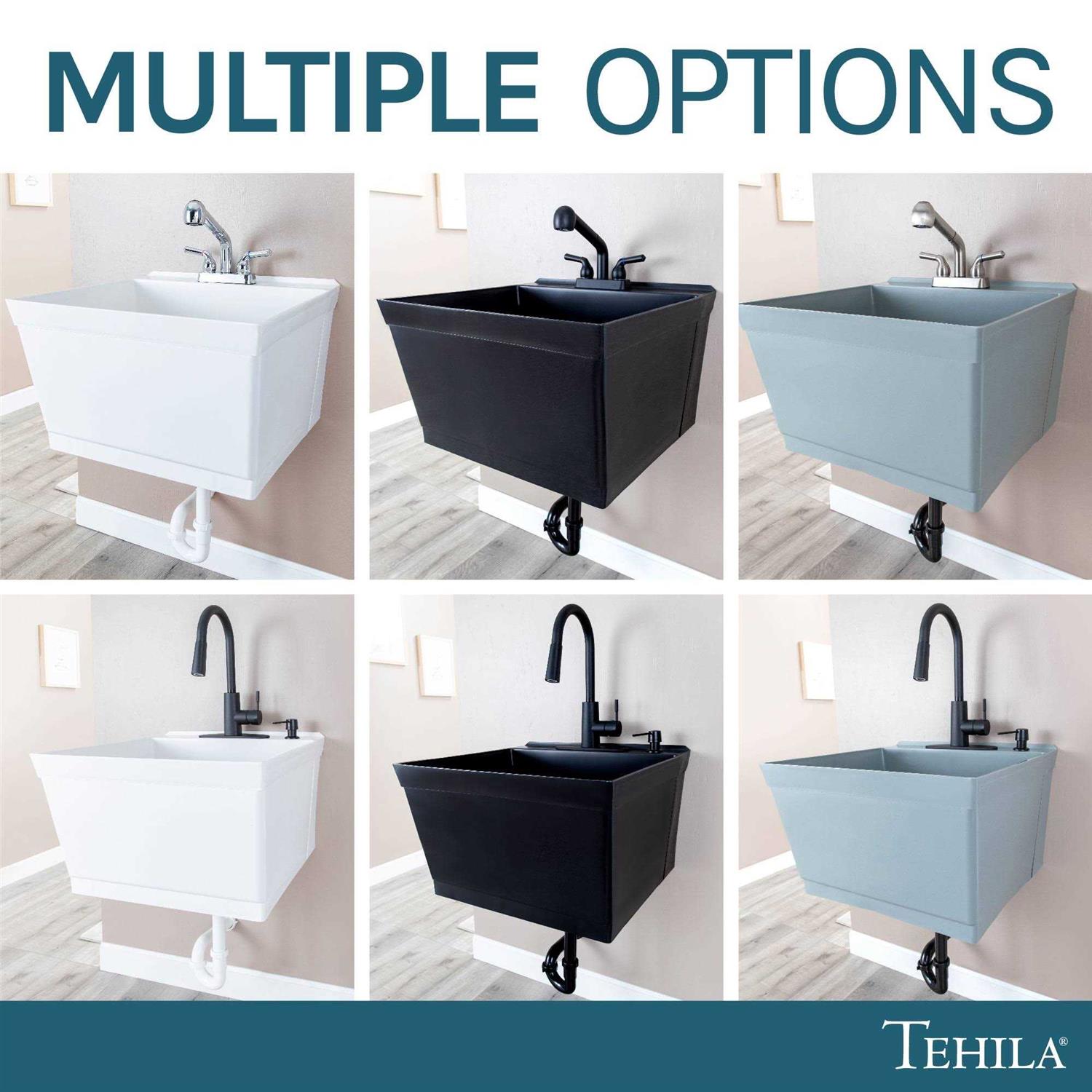 - Easily mount our 19-gallon utility sink to your walls for an elegant, modern solution.