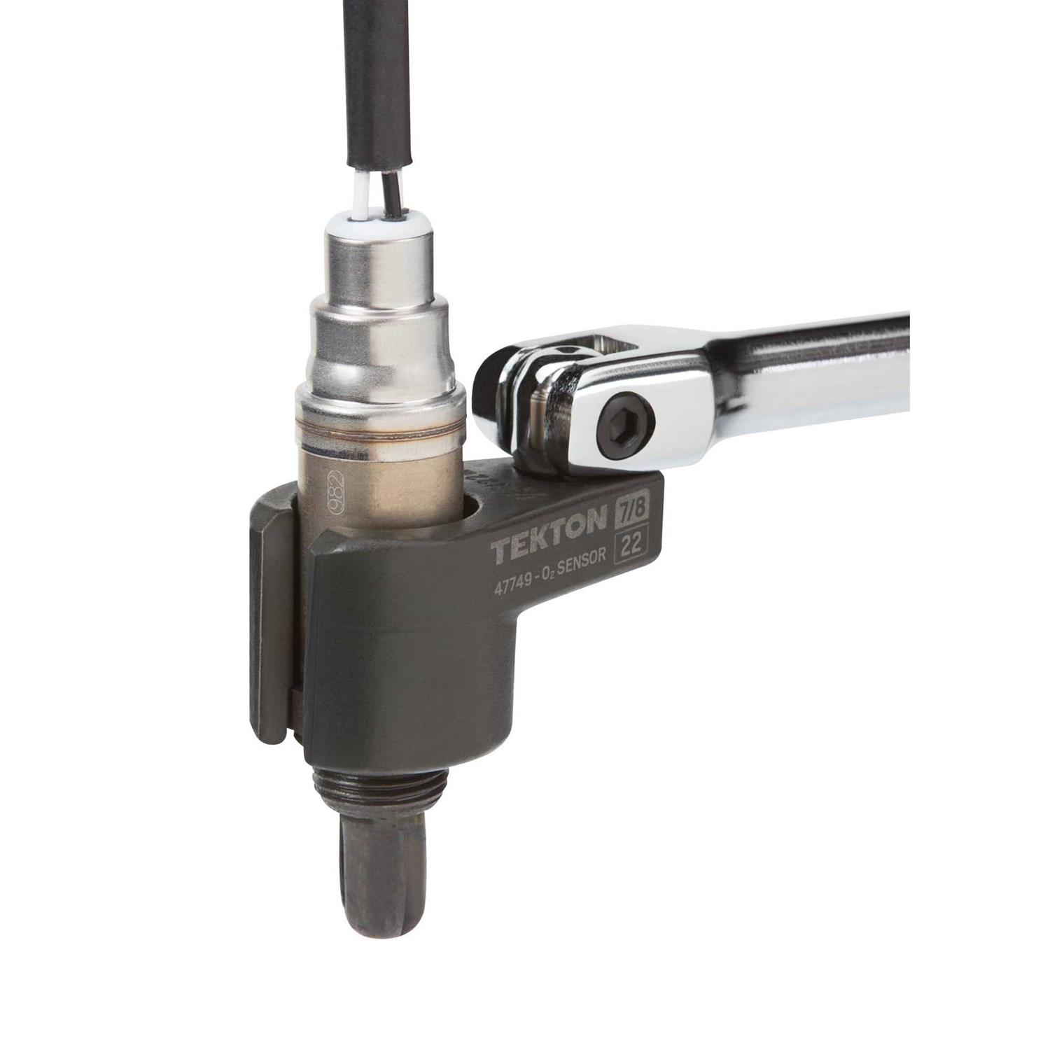 Built for use with ratchets and breakers bars, the TEKTON 47749 Offset Oxygen Sensor Socket makes removing and installing oxygen sensors on vehicles with computer-controlled engines easy. A heat treated, chrome molybdenum steel construction ensures that the socket will take on oxygen sensors time and time again. The corrosion-resistant black phosphate finish also adds longevity to the socket. Designed with mechanics in mind, this socket works quickly and efficiently in the tight space around oxygen sensors. The 6-point beveled nose design securely grips sensor fasteners, preventing damage to the sensor. A wire gate allows you to easily slip the socket onto the sensor, preventing damage to the wires. And with the offset design, it’s possible to access the oxygen sensor from the side, not the top, which eliminates the possibility of damage to wires. Even in low light, the high-contrast, permanent, laser etched size markings are easy-to-read. The size is also engraved into the chrome molybdenum steel on the top of the socket. Removes and installs oxygen sensors on vehicles Offset drive with wire gate prevents damage to wires Constructed from chrome molybdenum steel Removes and installs oxygen sensors on vehicles with computer-controlled engines Common 6 point, 7/8 in. (22mm) socket fits most oxygen sensors Offset drive with wire gate accesses sensor from the side, not the top, preventing damage to wires Use with any 3/8 in. drive ratchet or breaker bar High-performance chrome molybdenum steel construction Add this innovative breakthrough in comfort and support to your maintenance work by choosing this TEKTON Drive Offset Oxygen Sensor Socket.