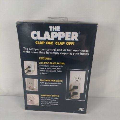 Turn on household devices with the clap of your hands Plugs into standard light sockets Works with lamps and other devices Can be used in tandem with a second clapper for turning on multiple devices Contains one Clapper The sound activated on/off switch. With clap detection lights. 2 Claps turn onthe lamp. 3 Claps turn on