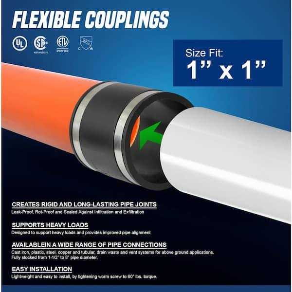 Flexible Couplings have found wide acceptance among sewer and plumbing contractors and municipalities because of their quality and ease of installation. These pipe couplings and adapters are used for all types of in-house and sewer connections: drain, waste, vent piping, house-to-main, repairs, cut-ins, conductor, roof drains and increasers-reducers. Manufacturing thousands of different flexible coupling types, The Plumber’s Choice has the right solution for most applications. Made of tough elastomeric polyvinyl chloride (PVC), the flexible couplings are strong, resilient, and unaffected by soil conditions. They are also resistant to chemicals, ultraviolet rays, fungus growth, and normal sewer gases due to the inert nature and physical properties of the PVC material. Flexible couplings are leak-proof, rot-proof and seal against infiltration and exfiltration, giving you confidence in your pipe connections. This product can expose you to chemicals including Phthalate’s content which are known to the State of California to cause cancer, and birth defects or other reproductive harm. Color: Black.
