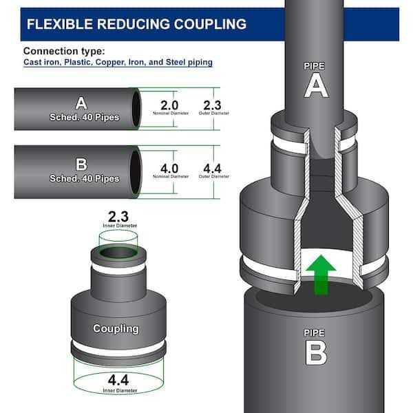 The Plumber’s Choice 4 in. x PVC Flexible Reducing Coupling with Stainless Steel Clamps