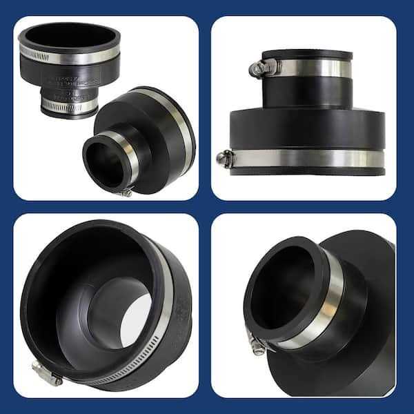 The Plumber’s Choice 4 in. x 2 in. PVC Flexible Reducing Coupling with Stainless Steel Clamps, Black E53844X2″