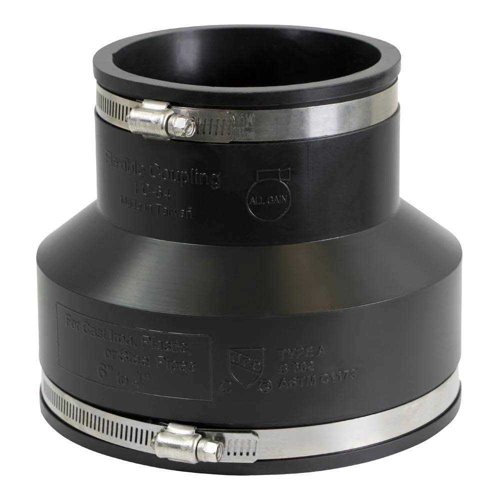 The Plumber’s Choice 6 in. x 4 in. PVC Flexible Reducing Coupling with Stainless Steel Clamps, Black E83846X4