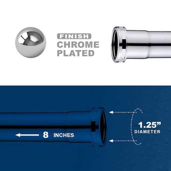 The Plumber’s Choice 1-1/4 in. x 8 in. Brass Slip Joint Extension Tube for Tubular Drain Applications, 22GA, Chrome Plated, Grey 8412