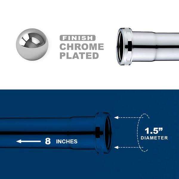 The Plumber’s Choice 1-1/2 in. x 8 in. Brass Slip Joint Extension Tube for Tubular Drain Applications, 22GA, Chrome Plated, Grey 8432″
