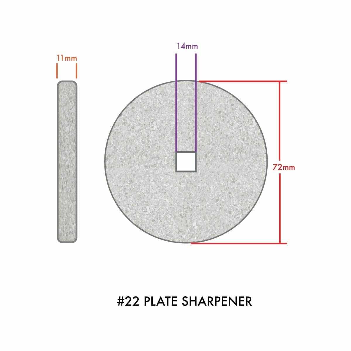 Material Type: Coarse Grind Size: #22 Meat Grinder Knife and Plate Sharpening System Over time, knives chip and dull and plates become worn down. Resurfacing both tools offers a clean, fresh surface perfect for getting excellent results with less smearing and jamming. Most importantly, working with sharp plates and knives makes manual grinders easier on the arm and puts less strain on the motors of electric grinders. Our TSM Meat Grinder Plate and Knife Sharpening System includes two ceramic sharpening stones appropriately sized for sharpening both your meat grinder knife and the grinding plates. Weve used on the finest abrasives for this patent pending product and are sure that youll be thrilled with the results. Getting started is simple! Just replace either the grinding plate or knife in your electric or manual meat grinder and using the locknut to create friction you can sharpen the corresponding piece with ease! The stones can be soaked with water for smoother operation. A few seconds of operation in an electric grinder or 10-20 cranks on a manual grinder should give good results. Severely worn down parts may require longer. It is essential to sharpen both the knife and plate at the same time in order to create a fresh surface with good contact. PATENT PENDING Brand: The Sausage Maker, Inc.