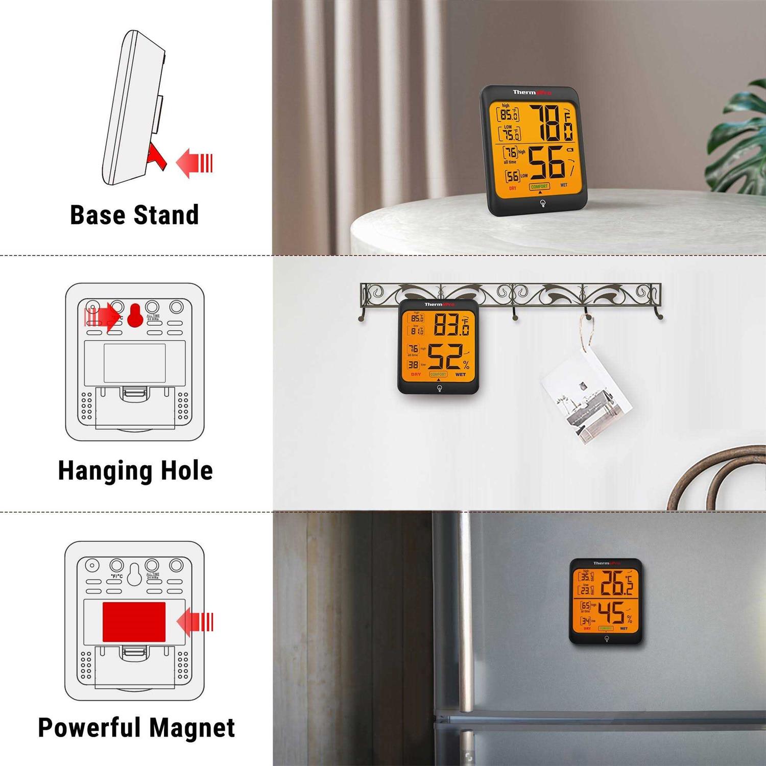 Equipped with industrial grade temperature and humidity sensors, the TP53W is the perfect choice to keep your living space in the perfect condition. Boasting class leading accuracy and a user-friendly design, this device is Packed with featuers such as 24hr high/low reading records, backlight, and comfort level indicator. The TP53W is up to the task whether its in the living room, in the greehouse, or in the garage.