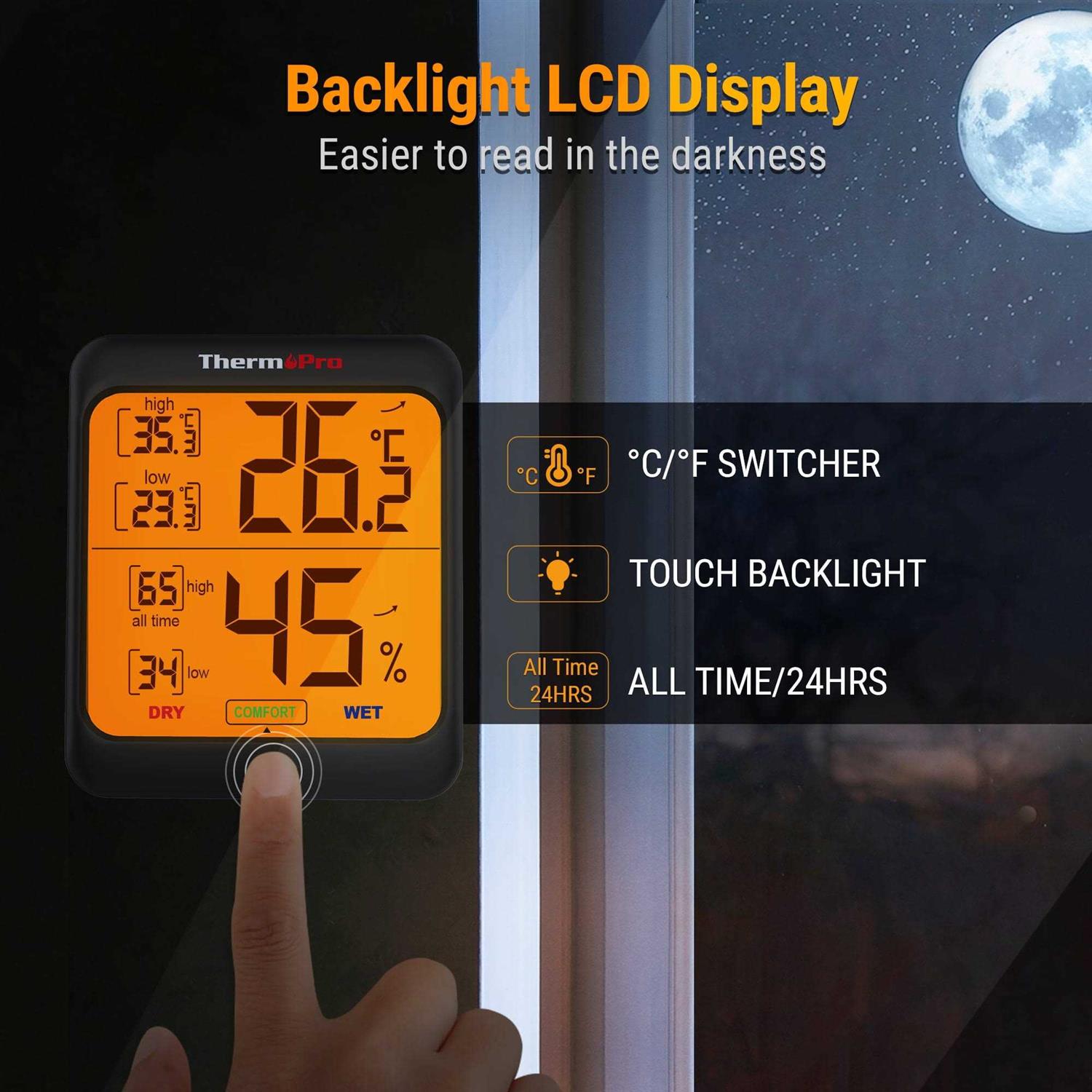 ThermoPro TP53W Digital Thermometer Indoor Hygrometer, Temperature Humidity Monitor with Min Max Records and Comfort Indicator, Backlight Display Room