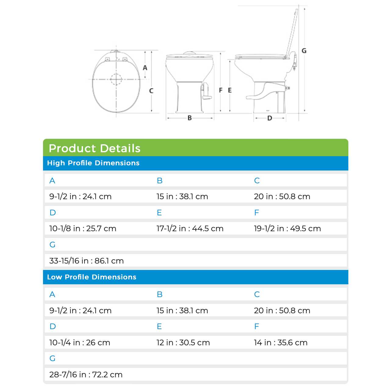 The lightest china bowl toilets ever – 20% lighter than Style Lite models. Features of this toilet consist of: The revolutionary new flush valve wipes clean with every flush. The smooth china bowl is easy to clean especially with an optional water-saving hand sprayer. The full-size residential seat a taller 17 1/2″ seat height on the High Profile model and easy-to-use single pedal flush offer maximum comfort and convenience. Easily replaces most permanently – installed RV toilets. Below is a general video showing just a few features of the Aqua Magic Style II Toilets. The high profile model weighs only 26 1/2 lbs. The low profile model only 25 lbs. Both models feature a powerful flush with 100% bowl coverage.