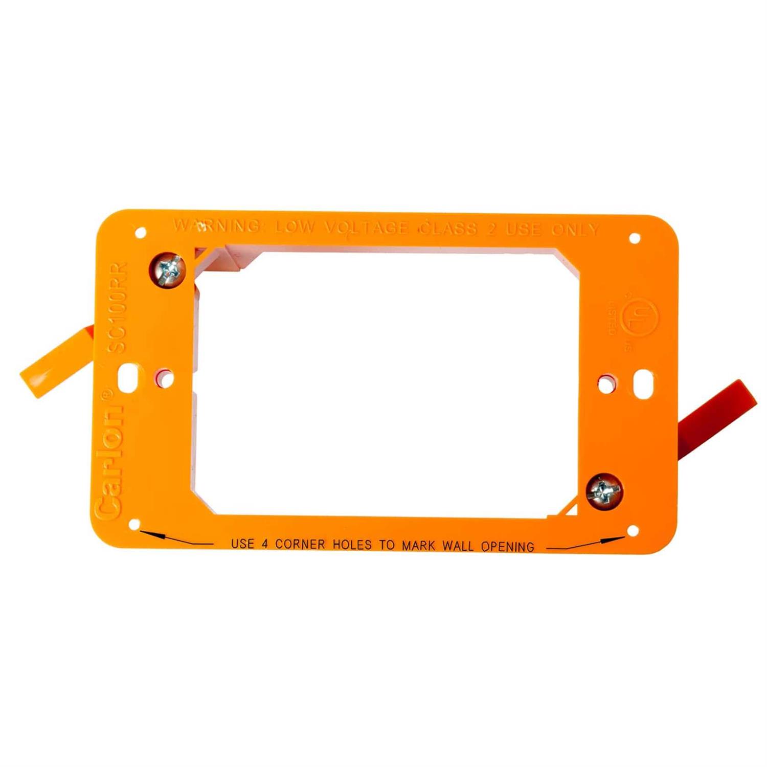 Single gang. Low voltage old work box. Adjusts from a wall thickness of 1/8″ – 1-1/8″. Mounts standard low voltage wiring plates. Provides a secure method of mounting low voltage class 2 devices such as a telephone or cable tv jack to an existing wall. Can be mounted horizontally or vertically. Allows for the full unrestricted bend radius of coaxial rigid cable.