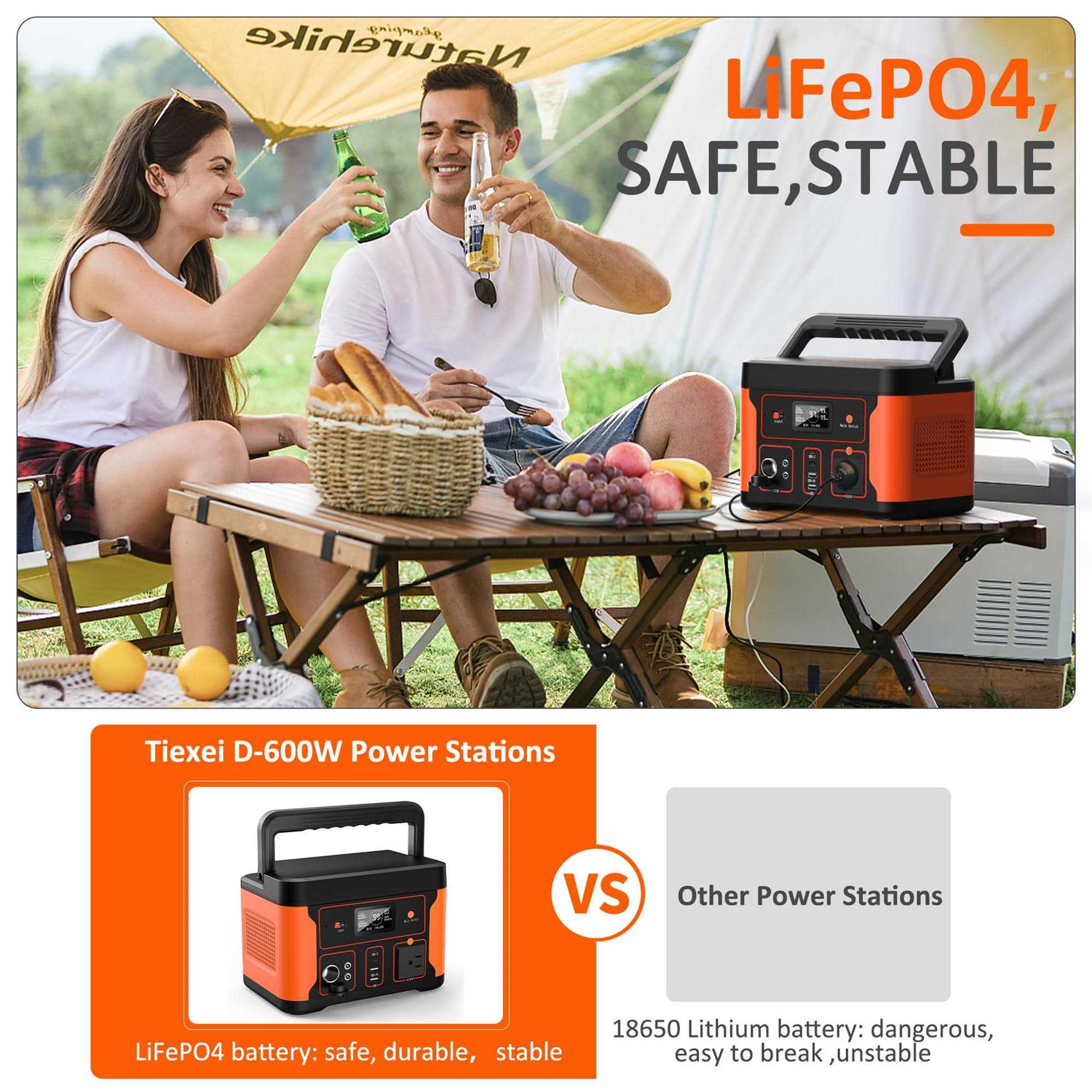 Tiexei D600 Portable Power Station 600w 550Wh/172000mAh LiFePO4 Battery Generator for Outdoor Camping
