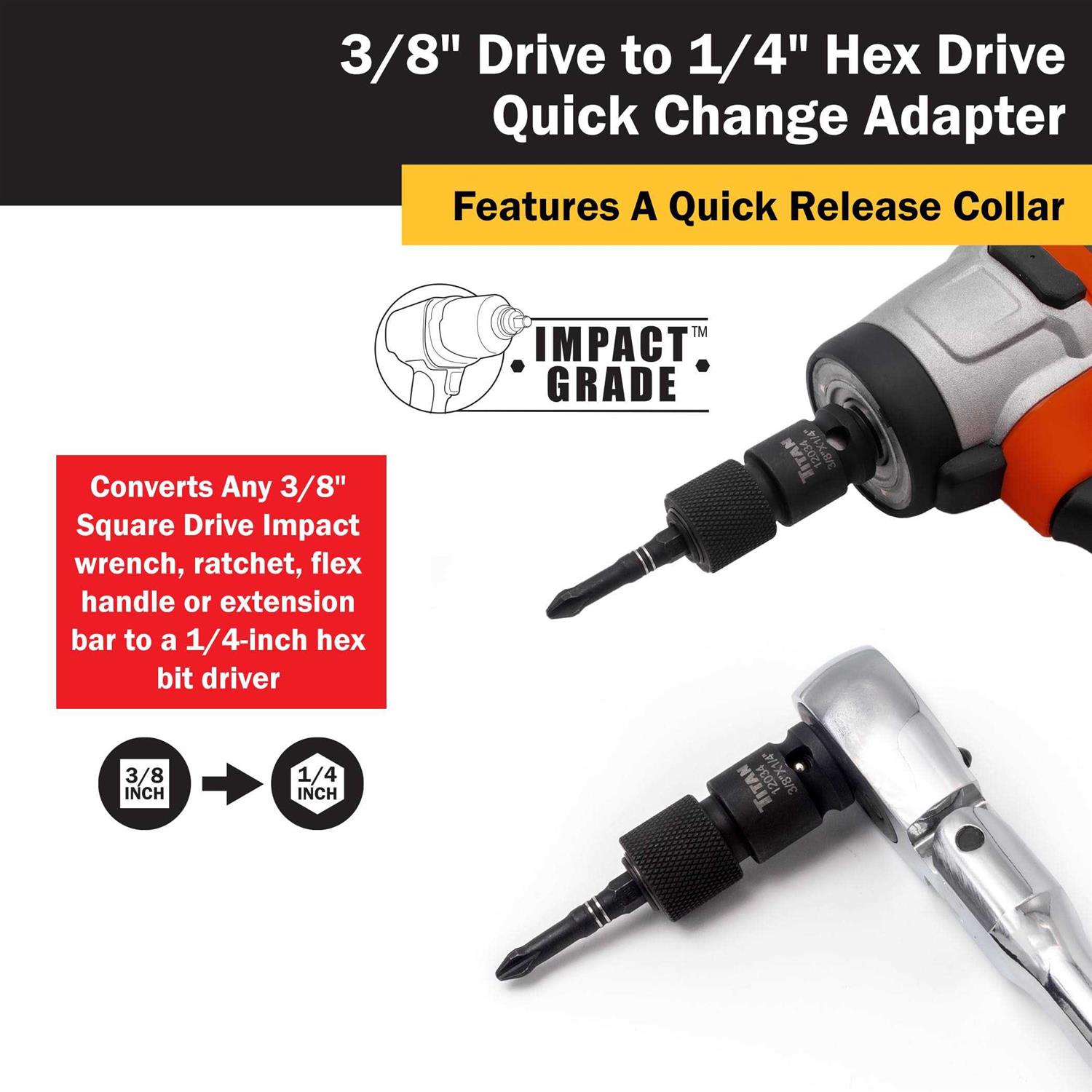Titan 12034 3/8 Drive to 1/4 Hex Drive Quick Change Adapter