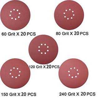 • 20 pcs Each of 60 80 120 150 240 Grits 9 inch sanding discs.