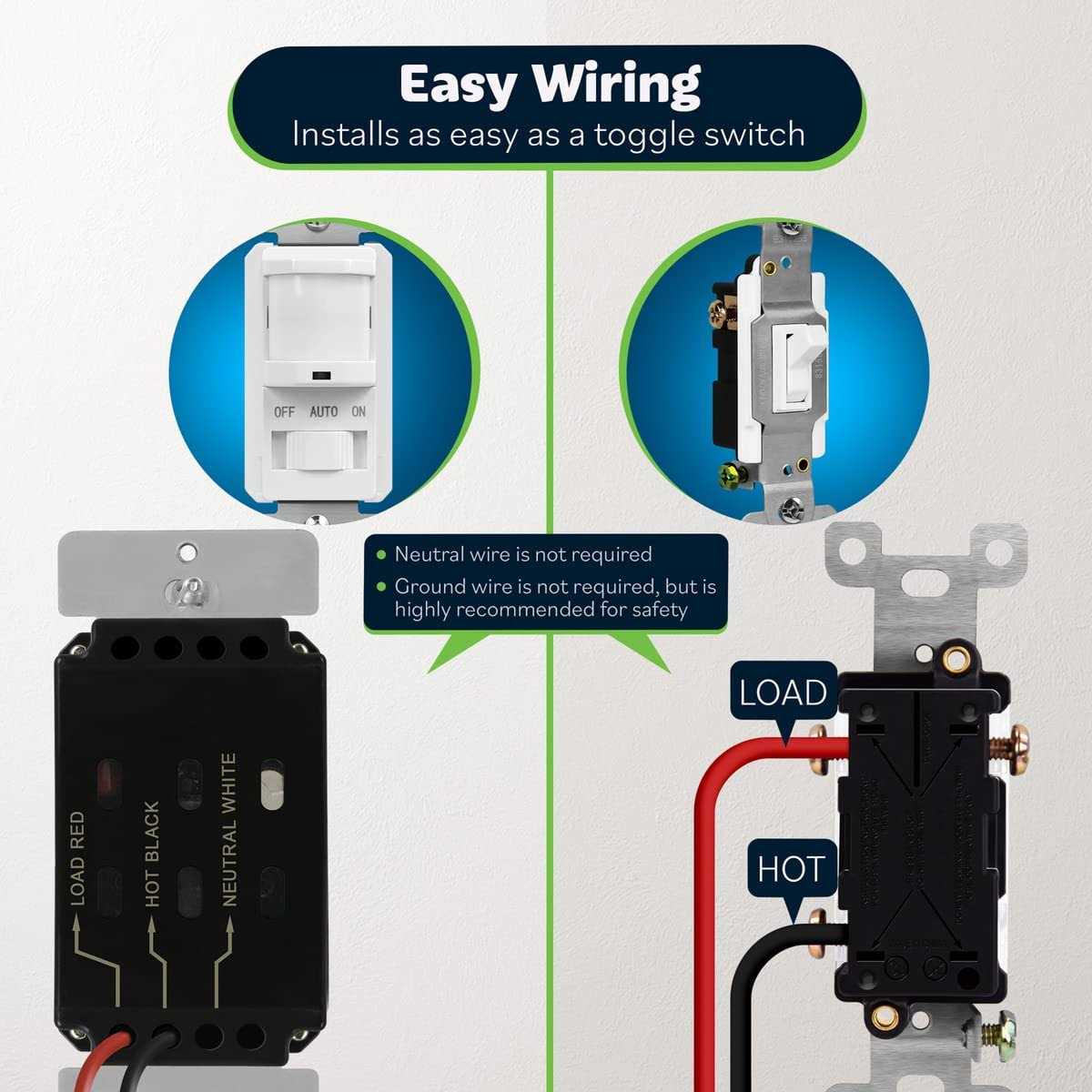 • Motion Sensor Switch, PIR Sensor Light Switch, Adjustable Time Delay, No Neutral Wire Required