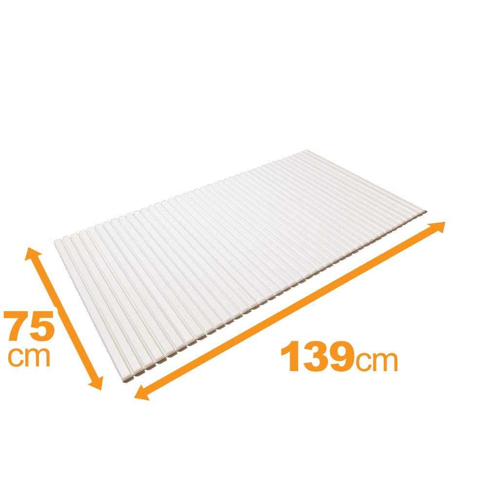 Bath lid size: 29.5 55.4 inches (75 139 1.5 cm) Compatible Tub Size: 29.5 inches (75 cm) for 55.1 inches (1 Weight: 5.5 lbs (2.5 kg) Material: Main unit: Polypropylene Material: (Soft & Anti-Slip) Olefin elastomer. Heat resistant temperature: 244°F (110°C). Country of origin: Japan. Feature 1: SG Mark certified product. Features: 2: Classic roll-up lid for years to come. Feature 3: Durable and lightweight bath lid, excellent maneuverability