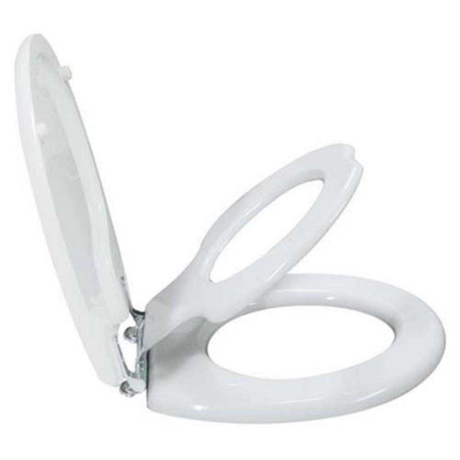 Topseat Parents and children love this convenient, innovatively designed toilet seat created to enhance your child’s potty training experience. Both children and adults can use this seat! A magnetic closure gently secures the built-in potty seat into its compartment in the seat lid until it is flipped down for use. The hinges are state-of-the-art slow close chromed metal. The hinges close the lid and ring quietly and gently. The lid and the ring are both white. This particular model fits round bowls. See the size and installation diagram image above. Installation hardware included.