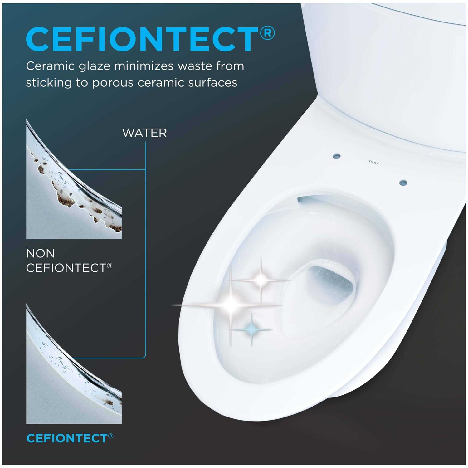The TOTO Aquia IV two-piece elongated dual flush 1.28 and 0.9 GPF toilet with CEFIONTECT is the epitome of modern form and function. The enhanced design of the Aquia IV inner bowl reduces water flow resistance and turbulence, resulting in a quieter flush. The chrome center-mounted push button that sits atop the tank allows you to proactively conserve water by choosing between a 0.9 GPF rinse or 1.28 GPF for tougher jobs. The TOTO Aquia IV meets the standards for EPA WaterSense, and California’s CEC and CALGreen requirements. The Aquia IV comes ready for install into a 12″ rough-in, but may be adapted for a 10″ or 14″ rough-in with the purchase of a separately sold adapter. The Aquia IV bowl and tank set includes tank to bowl hardware, a tank to bowl gasket, outlet socket, and toilet bolt caps. Additional items needed for installation and use must be purchased separately: seat, wax ring, toilet mounting bolts, and water supply lines.