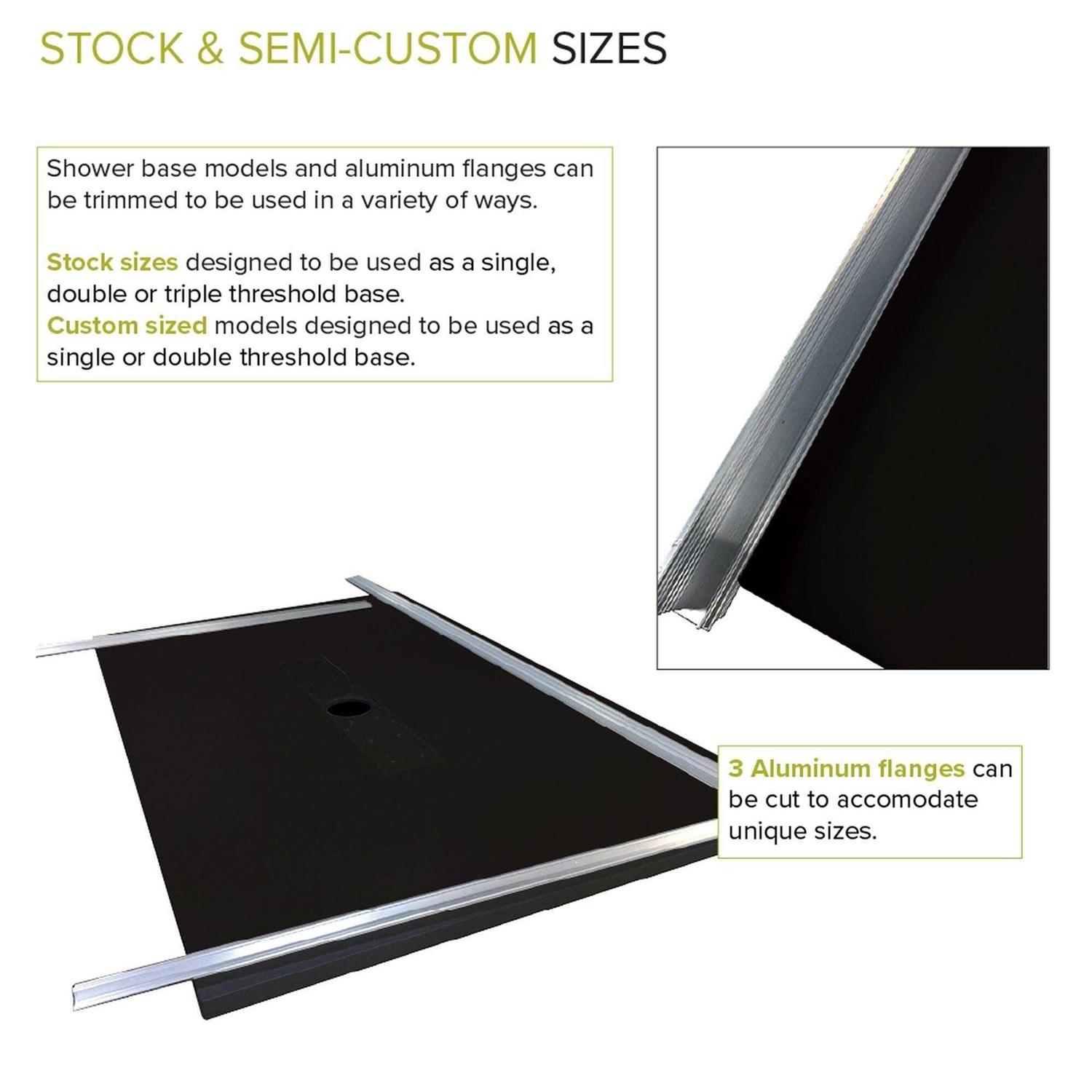 Transolid’s zero threshold shower base is a perfect solution for those who have trouble stepping over a higher shower threshold or bath or for anyone who enjoys the beauty and simplicity of a flush shower floor. Made of numerous layers of Transtone, a sheet-molded compound material that is solid throughout the base and is supported by sturdy structural ribs underneath that radiate out from the drain opening. When combined with a thinset mortar installation, this creates a flex-free, water-tight installation and a foundation that you can count on. This slip resistant, zero threshold shower base features a beautiful finish and can be used with single, double or triple threshold installations. Zero threshold shower floor creates a virtually flush entry to the shower with beautiful non-slip finish. Fully customizable shower base can accommodate a left or right handed shower drain and can be used for a single, double or triple threshold installation. Trimmable base up to 4″ in width from the side opposite drain or up to 2″ from depth. Transtone is a sheet molded compound material constructed of many solid layers of a glass reinforced polymer resin. There are many benefits to using the same solid material all the way throughout the base, including, protection against scratches, nicks and gouges, 4 times the impact resistance of other bases and 2.5 times the temperature resistance. A substantial 1.3″ tiling flange ensures no water will sneak in the cracks between your shower base and walls. The back side of the base employs structural ribbing to easily achieve a perfectly level base while maintaining superb strength. Concealed drain creates a pleasing uniform, minimalist design. Actual threshold measurement is 1″ but when installed, the difference against flooring is approximately 1/8″.