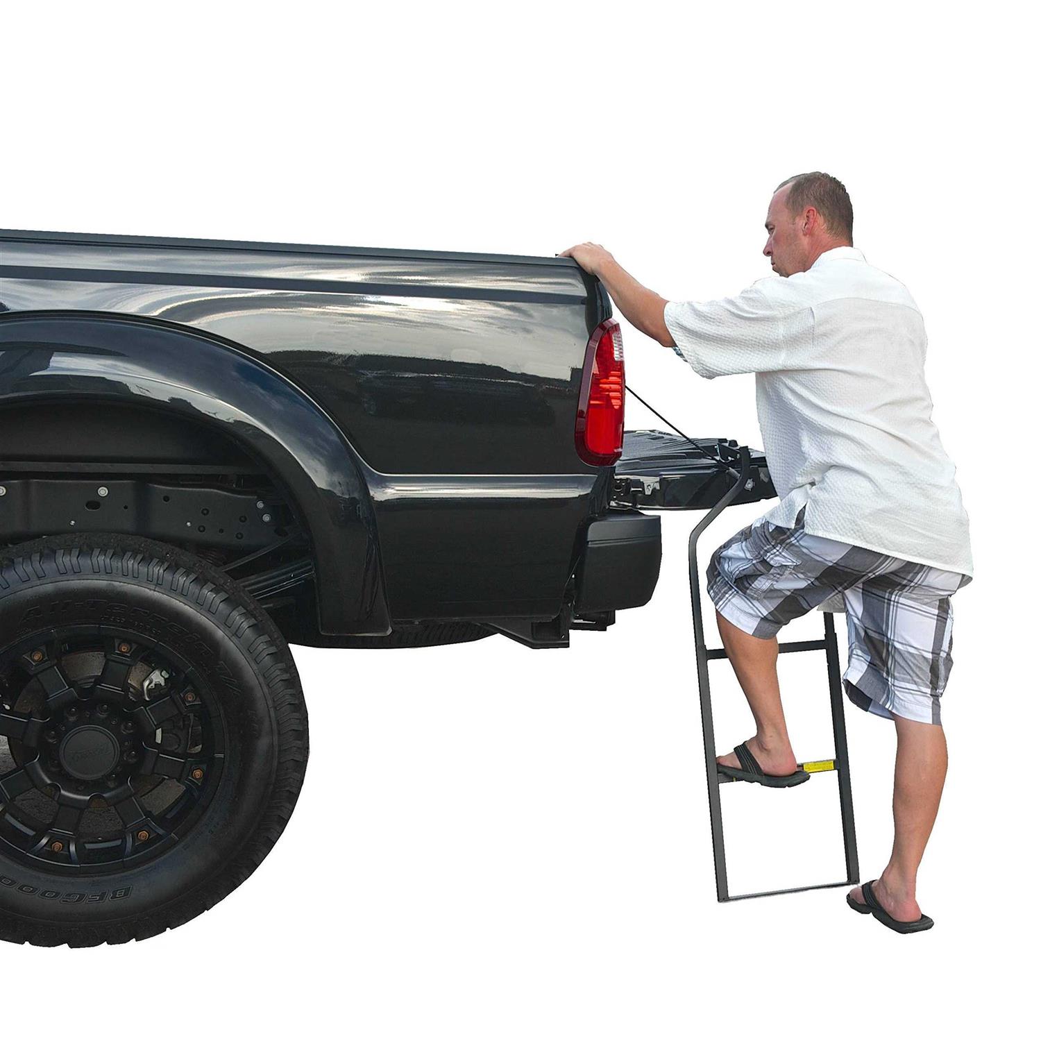 This part will NOT work with Dodge RamBox, Chevrolet Avalanche or Cadillac Escalade Trucks Introducing the Original Traxion Tailgate Ladder – the solution to your pick-up truck accessibility needs! With its easy-to-install design, this ladder fits most trucks with tailgate heights ranging from 28 to 42?. Deploying the ladder takes just a couple of seconds, giving you quick and easy access to the bed of your truck without the added strain of jumping or climbing. The ladder is designed to significantly reduce the physical strain on your body as you enter and exit your truck bed, making it an excellent choice for those with back, knee or mobility issues. When not in use, the ladder folds neatly against the tailgate, staying out of the way of your valuable cargo space. You can be sure of the durability of the ladder, thanks to its heavy-duty construction. The Traxion Tailgate Ladder has a 300 lb. total weight capacity, ensuring that you can easily carry your gear, tools or other equipment without worrying about weight restrictions. Overall, the Original Traxion Tailgate Ladder provides a nearly universal fit, simple installation, easy deployment and exceptional durability, making it a must-have for any pick-up truck owner. Say goodbye to the hassle of accessing your truck bed and hello to the convenience of the Traxion Tailgate Ladder. Note – Based on the model of truck and/or tailgate, the screw hole locations will vary. Only half of the holes in the mounting plate will be used. Optimum screw locations are the front and back sides of the mounting plate instead of the interior holes. Drill six holes in optimal locations using 0.14 inch drill.