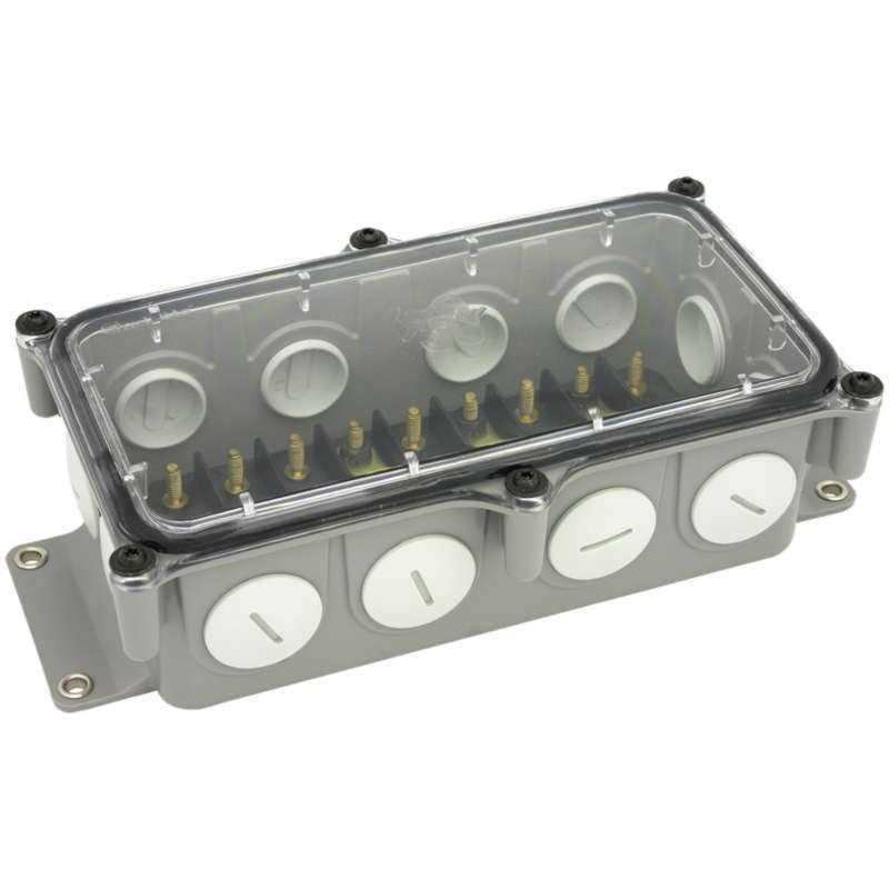 With 50 percent more harness ports, alleviates the need for multiple boxes, while allowing for the addition of more harness systems and increased lighting needs. Larger box makes it easier to work on internal connections. Clear lid offers easy viewing of connections without having to remove lid, saving time when trying to identify lighting system problems. Silicone gasket on lid helps to eliminate damage from moisture and corrosives within the box, reducing costly repairs. Made of high impact, chemical resistant, approved insulating plastic providing a long service life and eliminating the time and money needed for repair and replacement. Mounted by four eyelet-reinforced holes in base of box for increased durability. Contains 12 pre-tapped holes to accept compression fittings or filler plugs allowing for greater configuration versatility. Uses 50 Series compression fittings or 50830 filler plugs (6 included in kit).