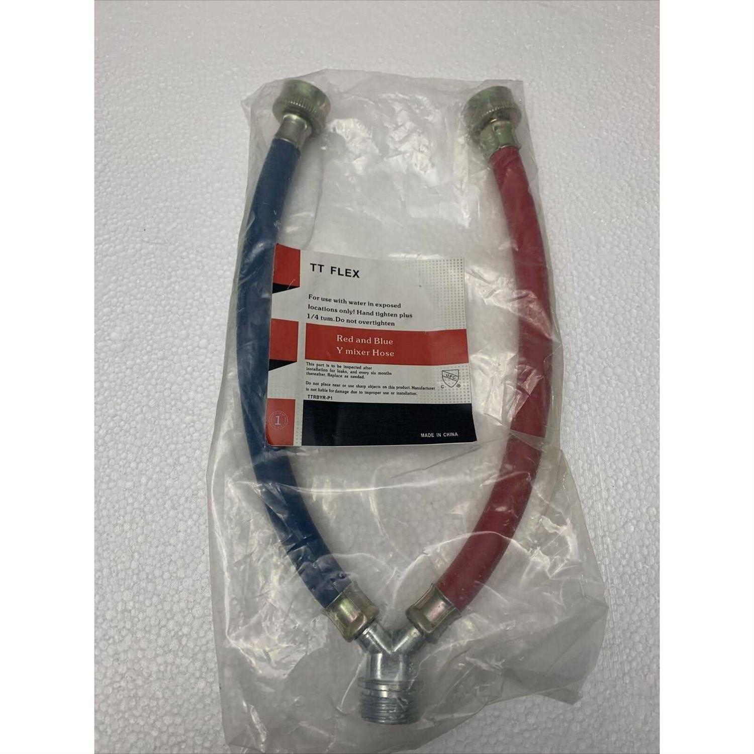 TT FLEX Rubber Washing Machine Y Mixer Hose Connector, Hot and Cold Color Coded