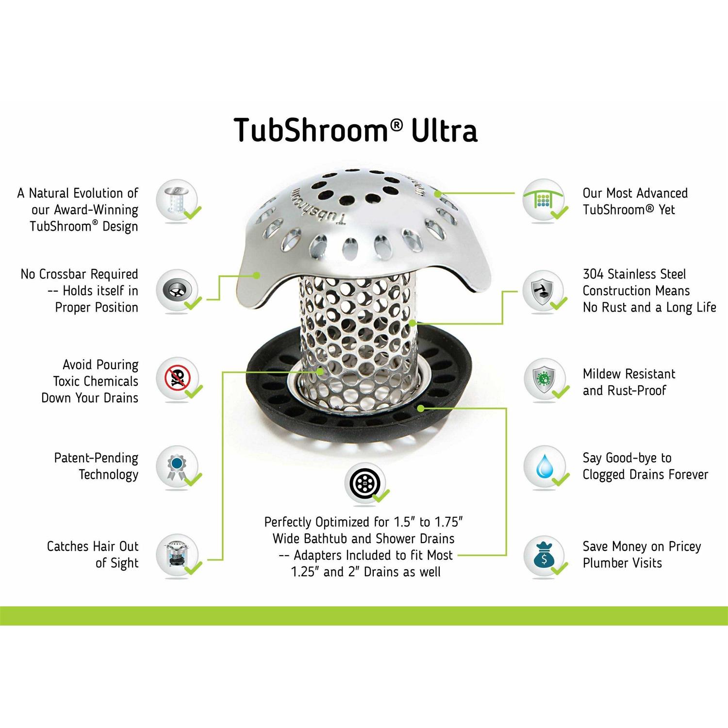 TubShroom Ultra TubShroom Stainless Steel Drain Hair Catcher