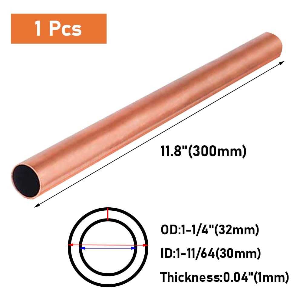 —- Size: 1-1/4″ OD – 1-11/64″ ID (32-30mm), Length: 300mm(12″), Wall Thickness: 0.04″(1mm), 1Pcs —- DIY Decoration: You can cut the copper tube by yourself to choose the desired length. —- Excellent Conductivity: 99.9% copper has good strong heat transfer capability and electrical conductivity. In addition, it isn’t affected by corrosion, temperature and pressure. If you want refrigeration tubing in refrigerators, freezers and air conditioners, it’s a good choice. —- Nice Appearance: The surface of pure copper tubing is smooth with no seam and full of metallic luster. You can use it for DIY handicrafts, jewelry, crafts, etc. —- Multiple Sizes: You can choose diversiform sizes of copper tubings. (OD:1/8″ ~2″, Length:300mm).