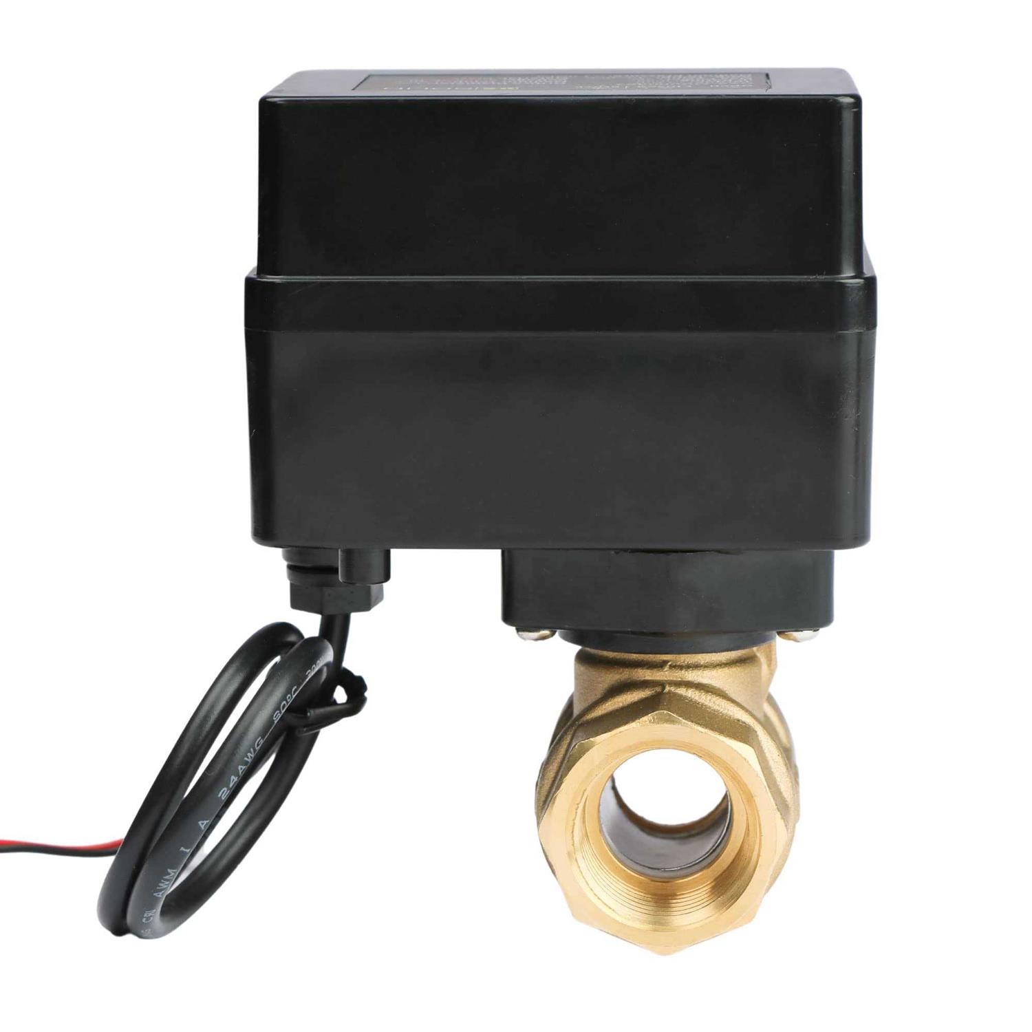 U.S. Solid Motorized Ball Valve, 1/2 inch Brass 9-36V AC/DC Normally Open Standard Port 2-Wire Auto Return Setup, with 3 Indicator Lights