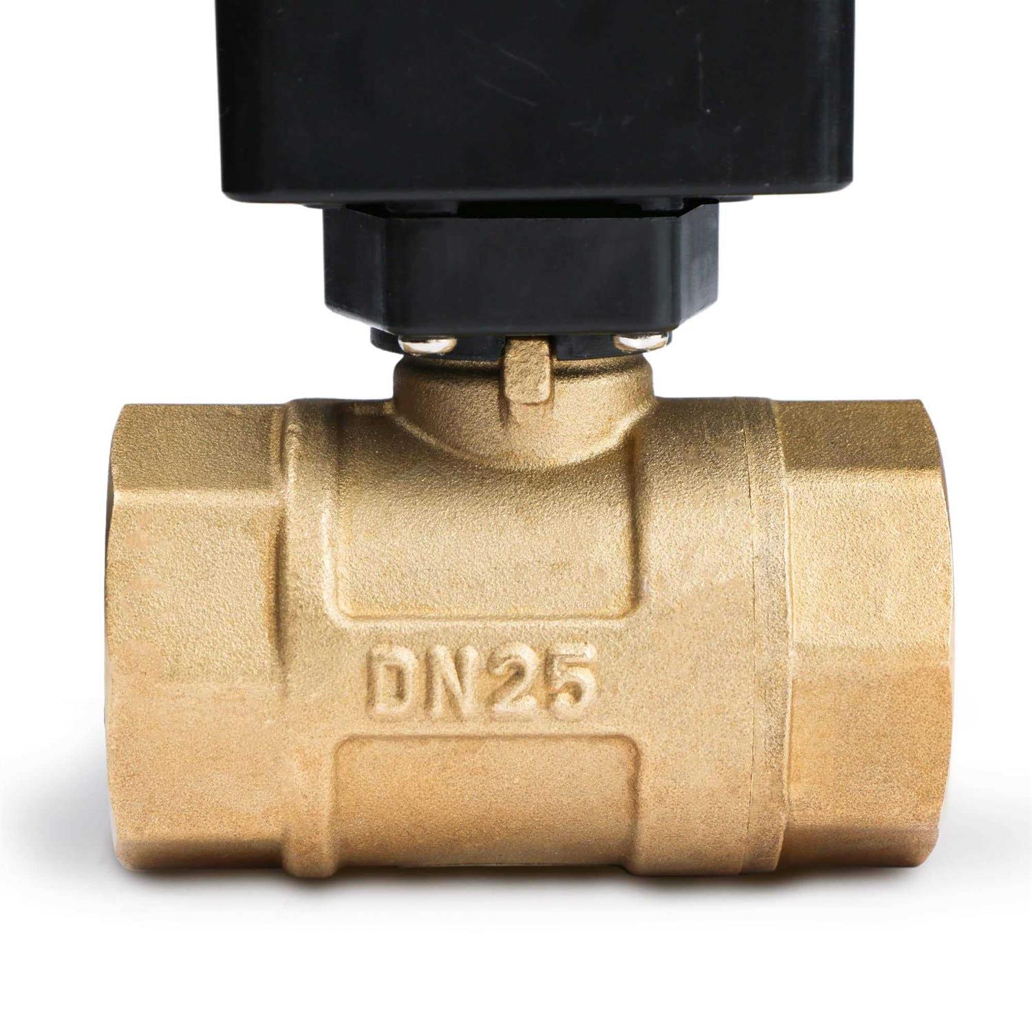 U.S. Solid Motorized Ball Valve, 1 inch Brass 9-36V AC/DC Normally Open Standard Port 2-Wire Auto Return Setup, with 3 Indicator Lights
