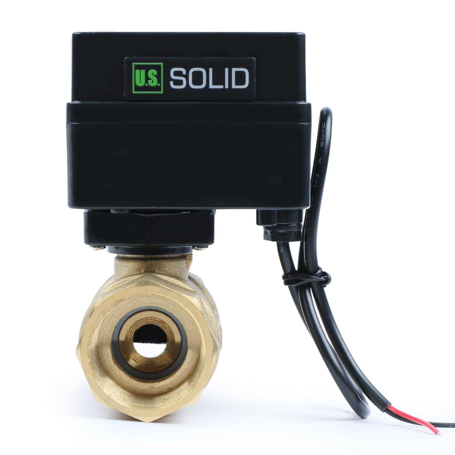 1″ Motorized Ball Valve – Brass Electric Ball Valve with 3 Indicator Lights – 2 Wire Auto Return, Normally Closed, 9-36V AC/DC by U.S. Solid